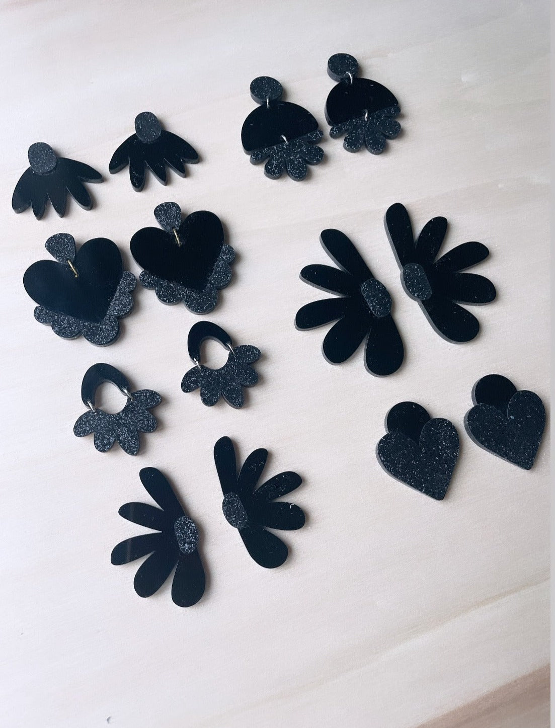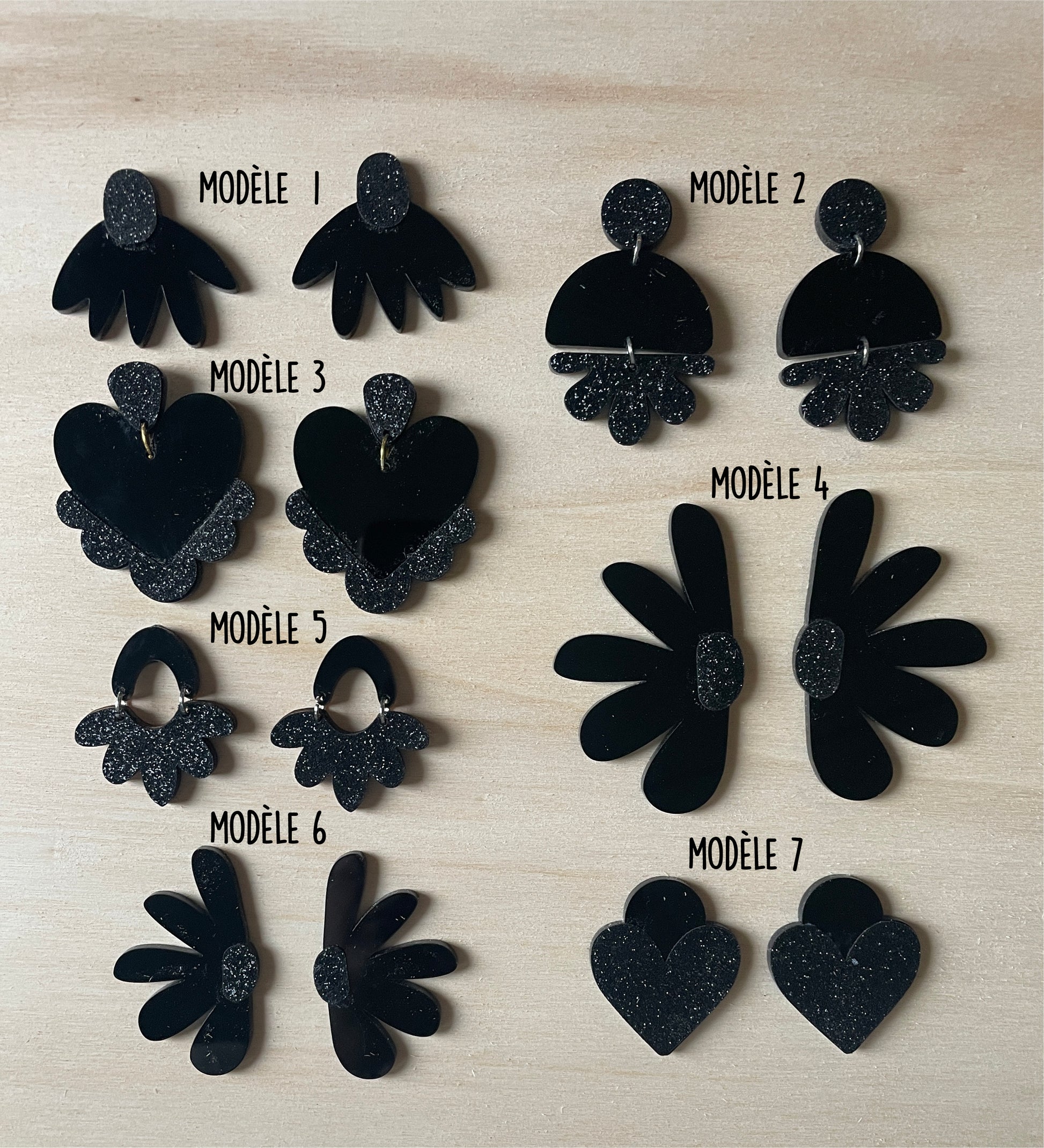 Vous aimez les boucles d'oreilles qui changent de l'ordinaire, cette collection est faite pour vous. Des formes originales, du noir et des paillettes pour leur donner un côté originale.