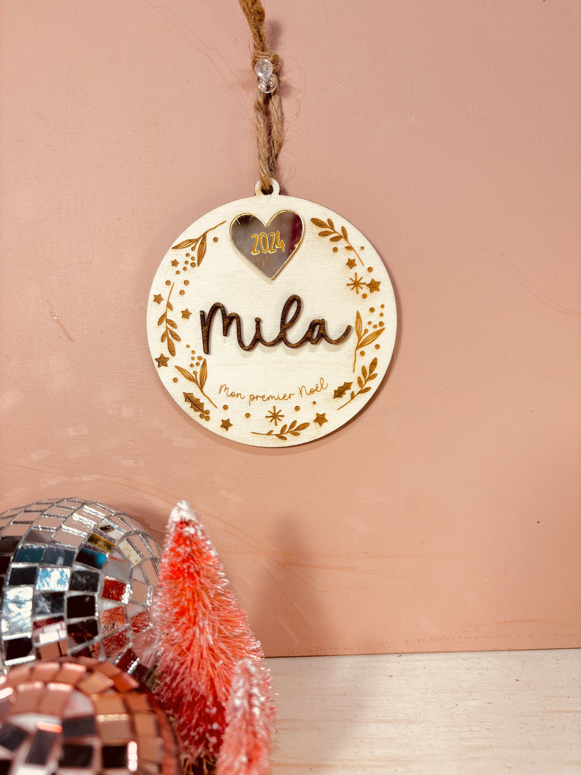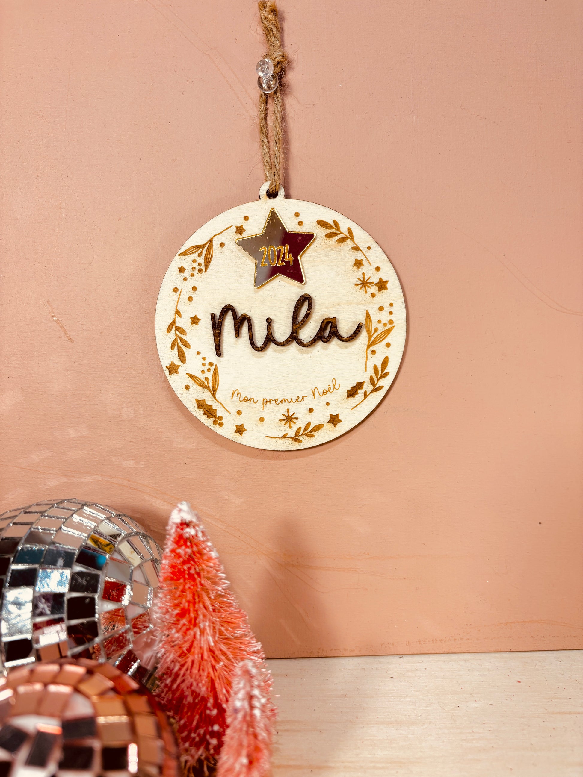 Marquez la première année de votre enfant avec cette jolie boule en bois et sa couronne de Noël personnalisable avec son prénom.
