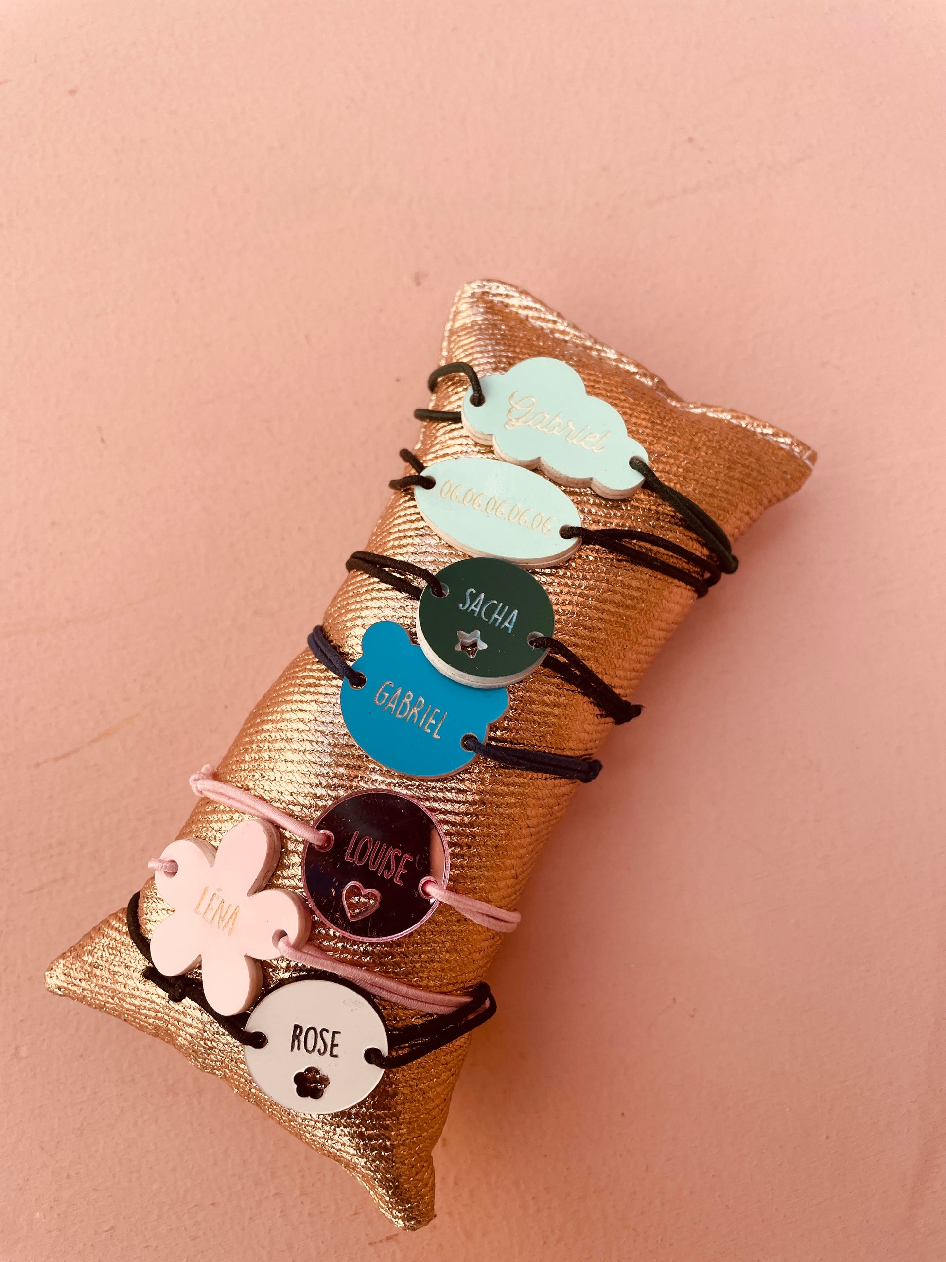 Craquez pour ces petits bracelets pour enfant. Vous pourrez y noter son prénom ainsi que votre numéro de téléphone.