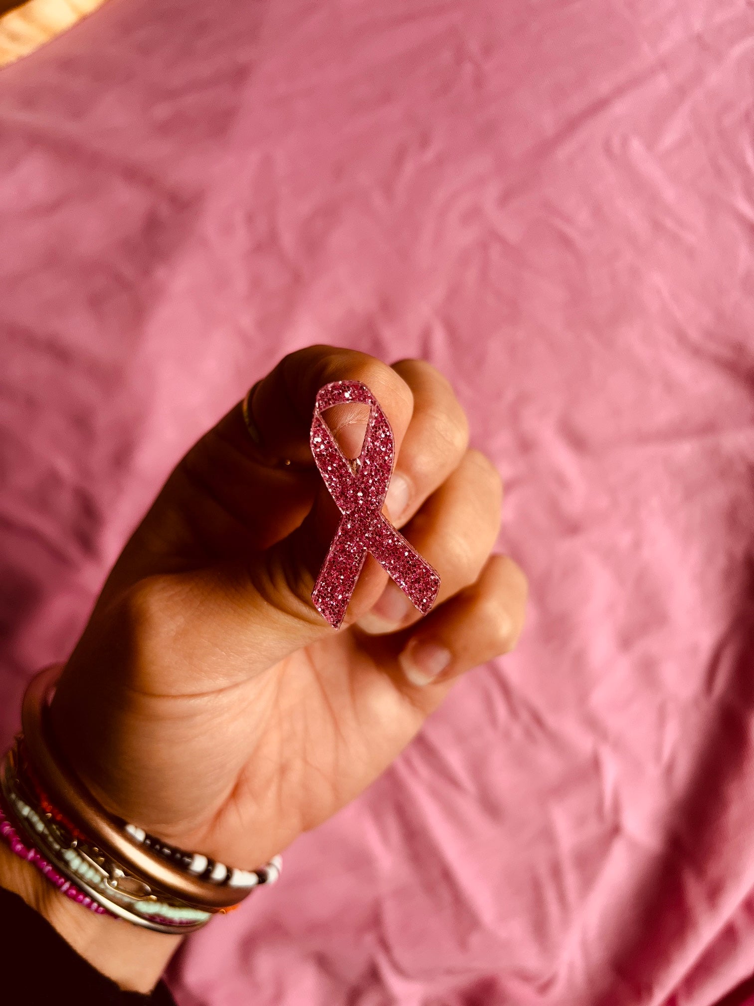 BROCHE RUBAN -OCTOBRE ROSE
