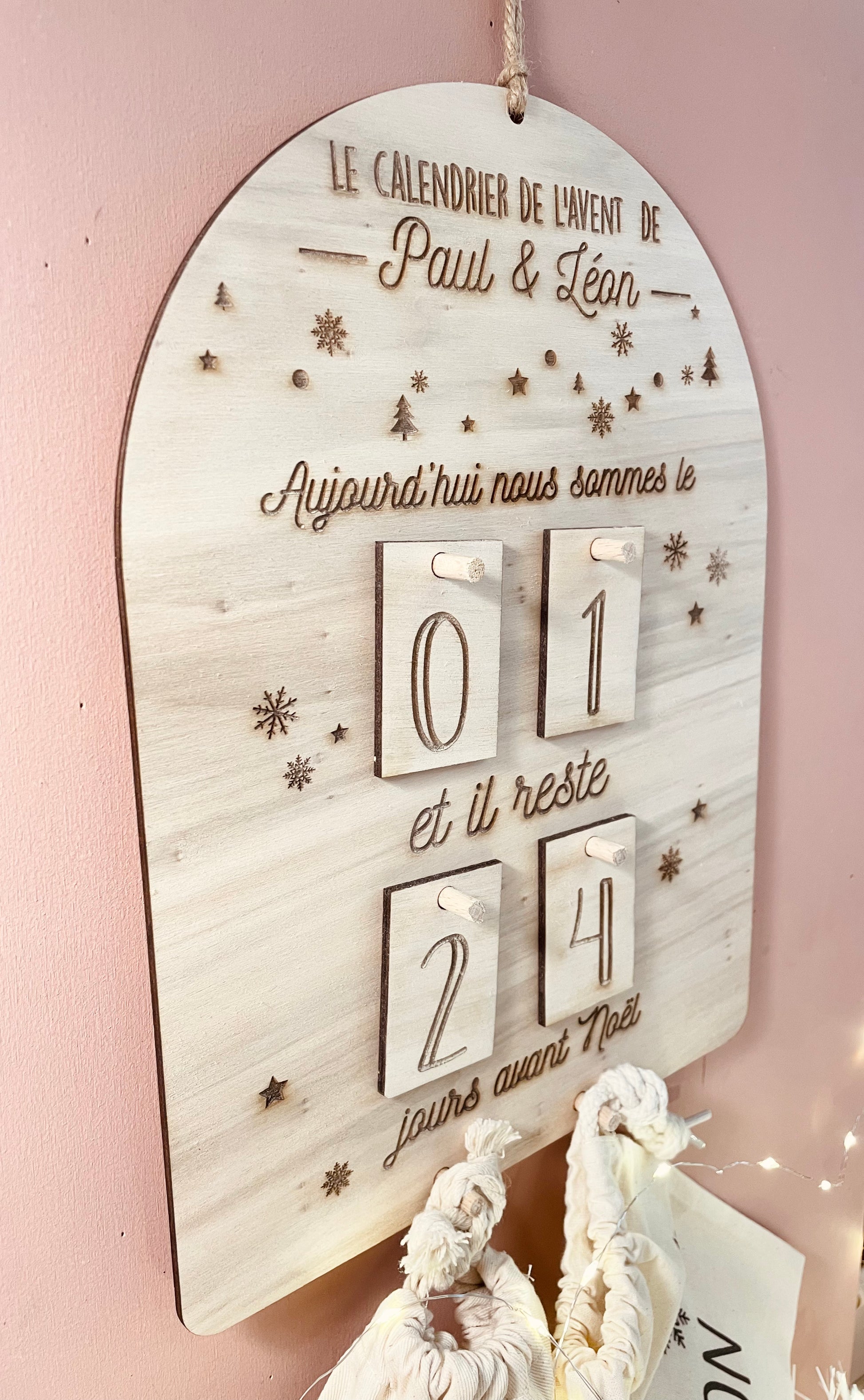 Pour rendre le mois de décembre encore plus féérique en attendant Noël, voici notre calendrier de l'avent en bois personnalisable.