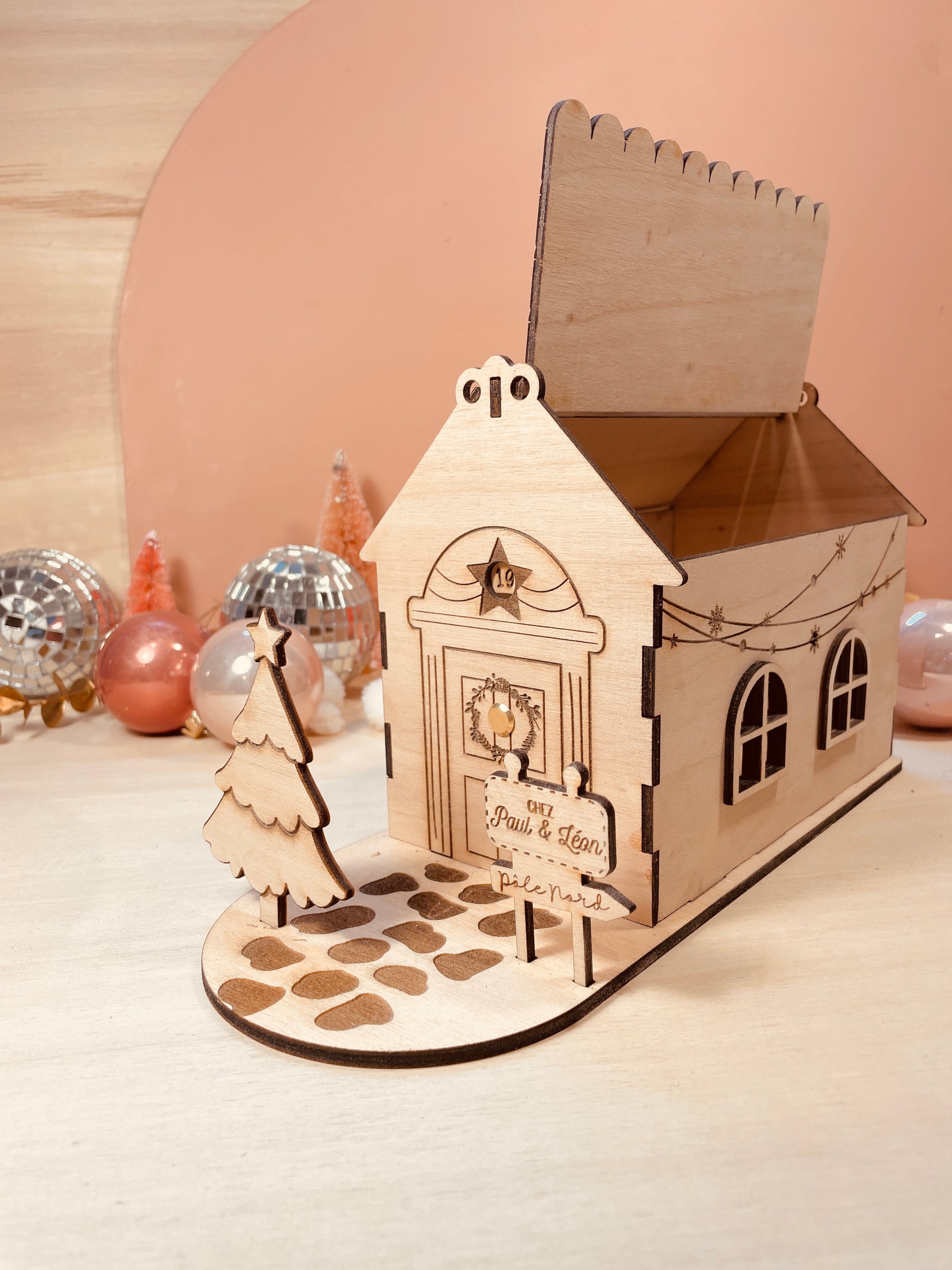 Pour rendre le mois de décembre encore plus féérique en attendant Noël, voici notre calendrier de l'avent en bois personnalisable, la maison de Noël.