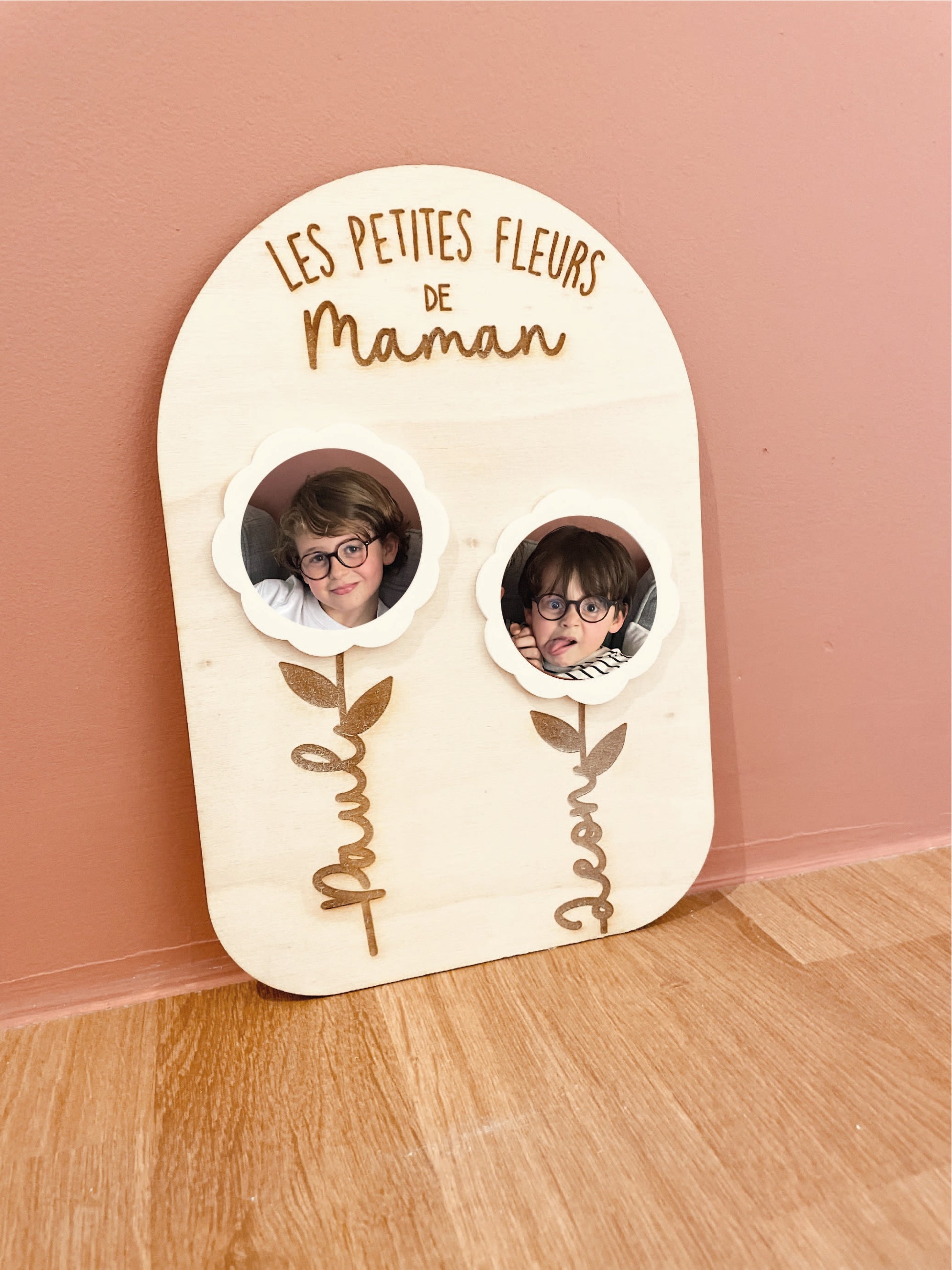 Vous pourrez offrir cette jolie carte à votre maman. Votre/vos enfants pourront y laisser leurs empreintes et également y mettre une photo d'eux.