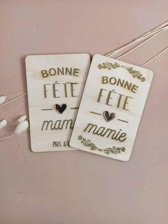 Parmi notre jolie collection de carte en bois vous retrouverez ces deux modèles pour la fête de nos précieuses mamies.