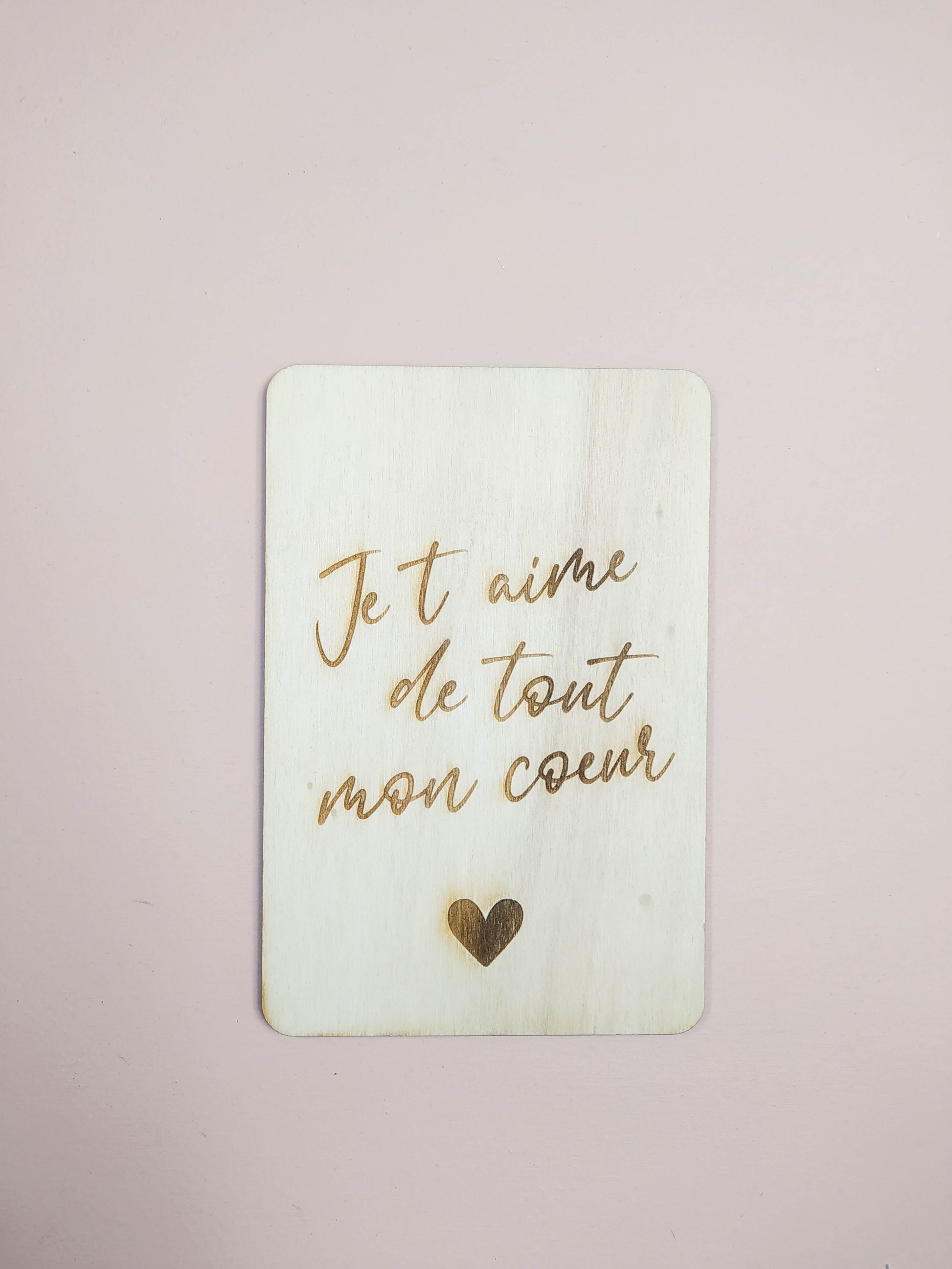 Notre jolie collection de carte en bois se décline sous plusieurs messages vous trouverez à coup sur votre bonheur pour toutes les occasions parmi notre large choix.