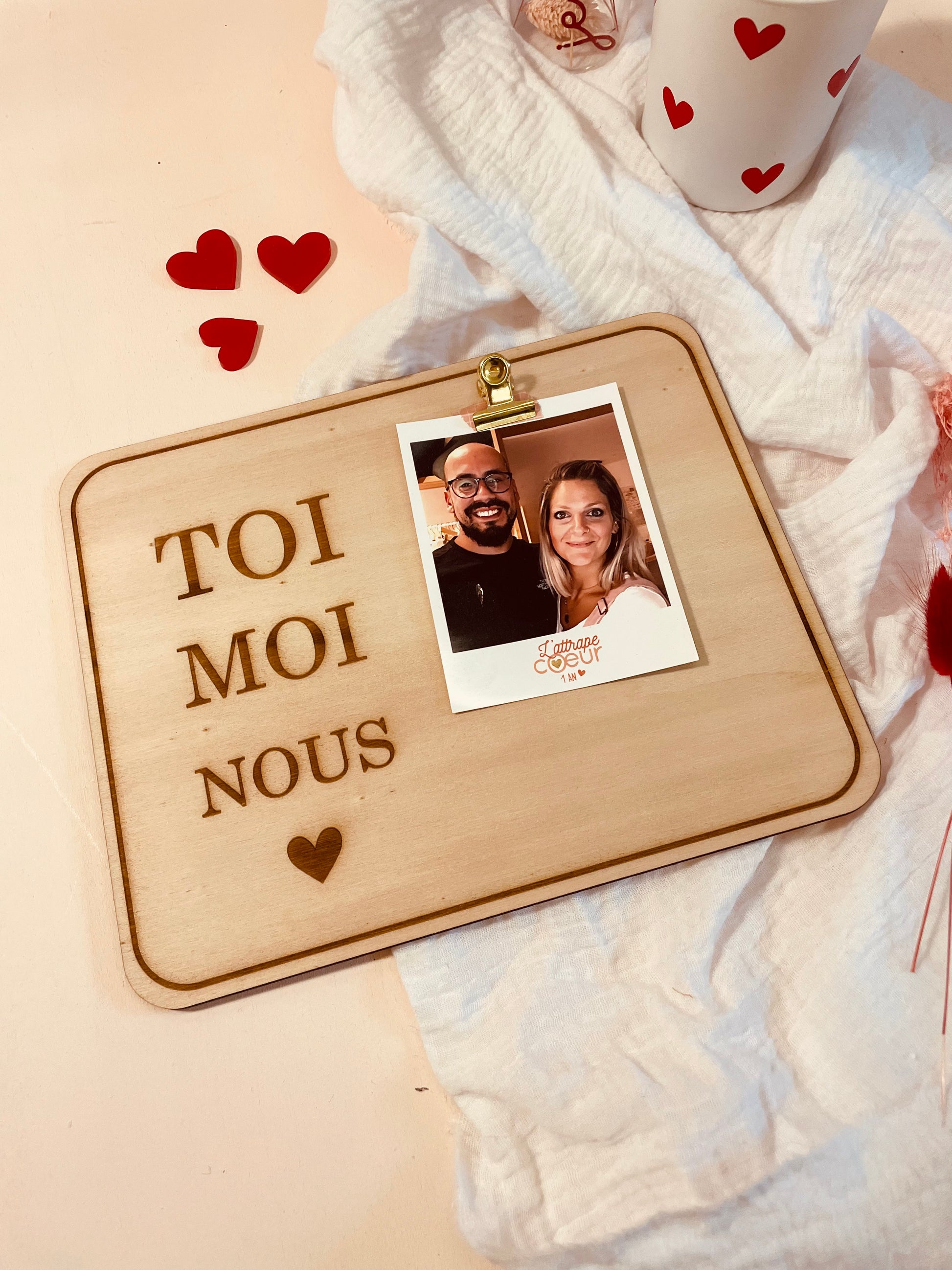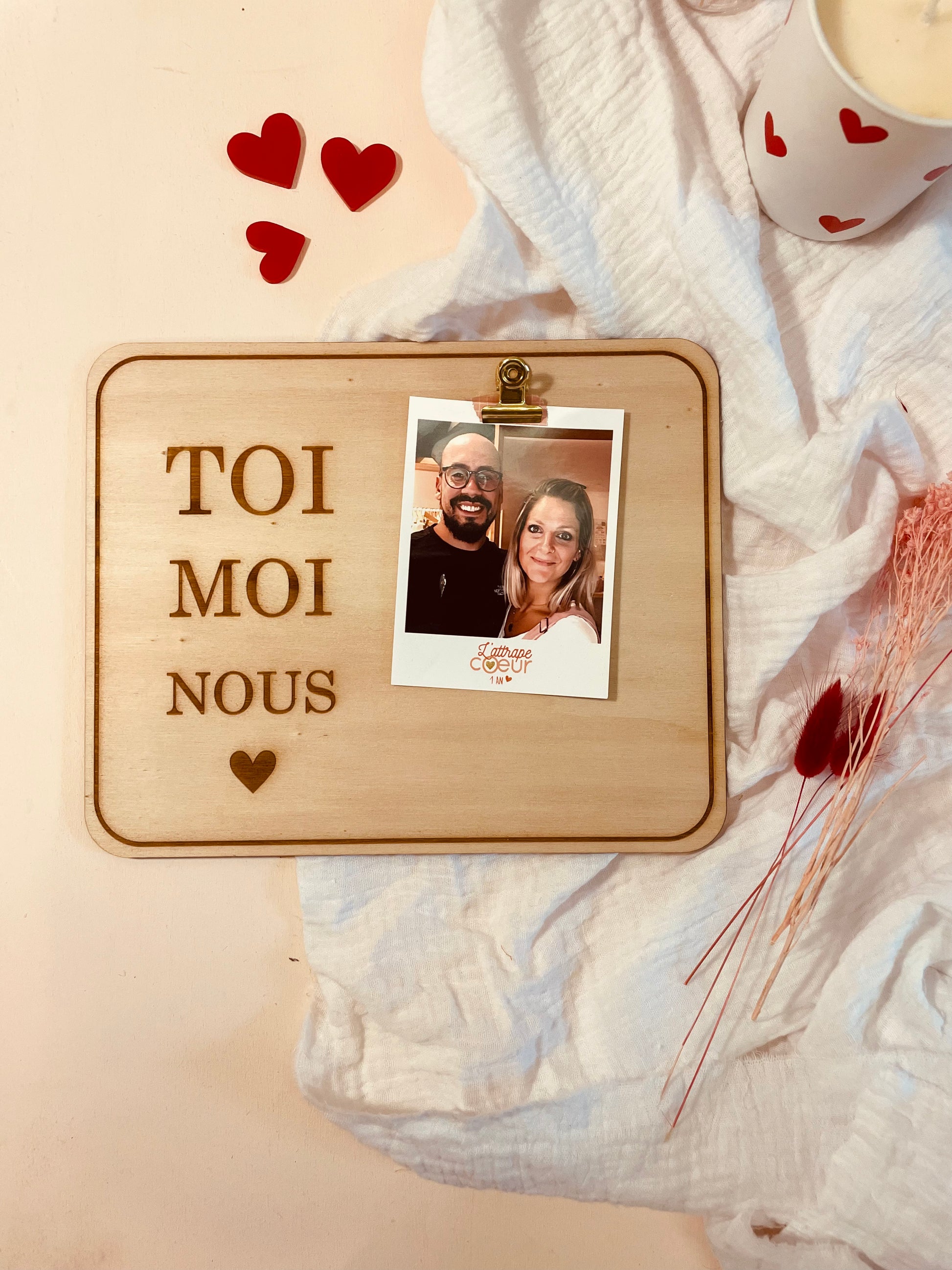 Craquez pour ce joli support photo en bois. Une idée de cadeau original à offrir à votre moitié. Tendance et intemporel il s'intégrera parfaitement avec votre décoration.