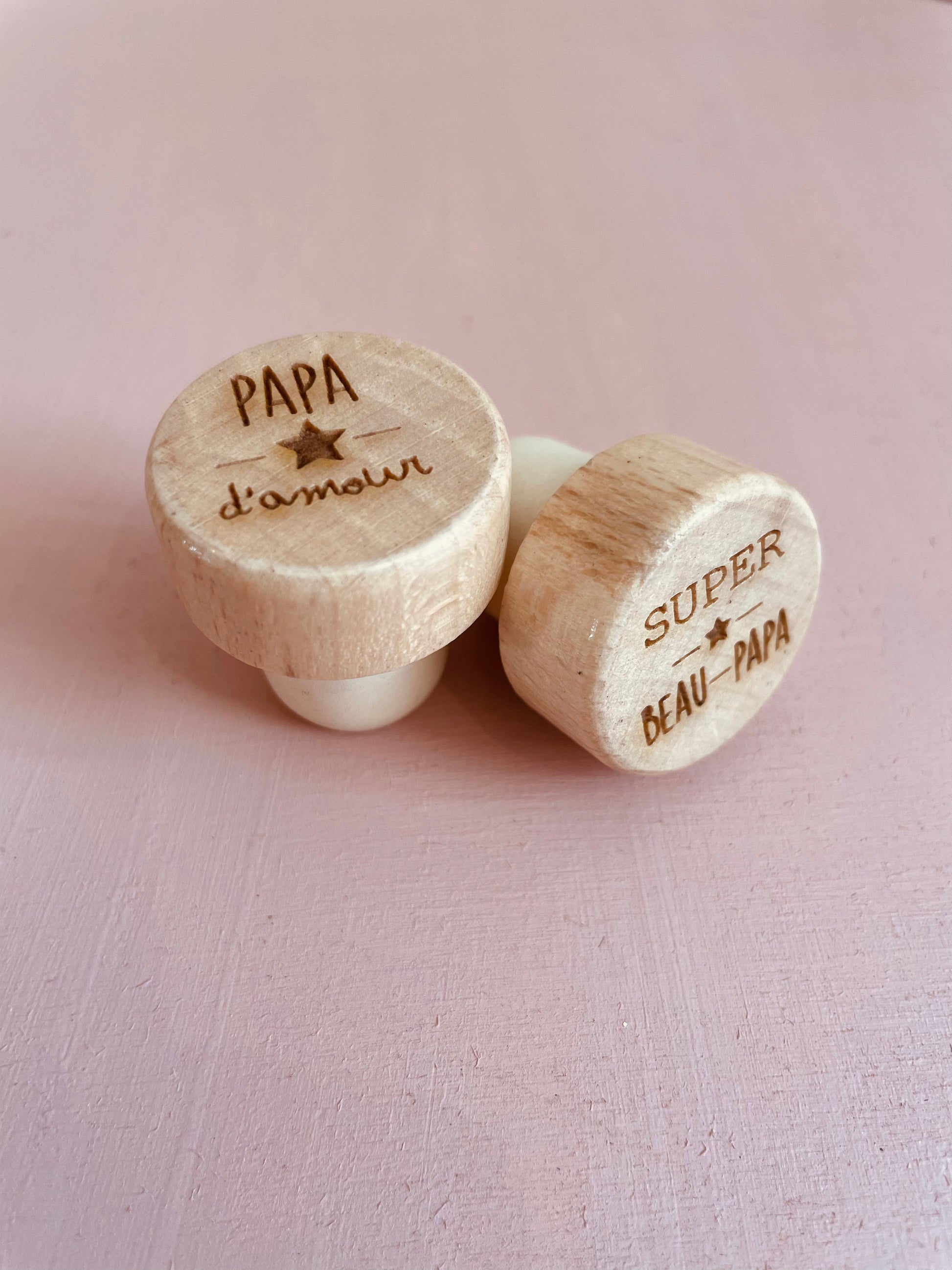 BOUCHON TÊTE EN BOIS FÊTE DES PAPAS - PERSONNALISABLE