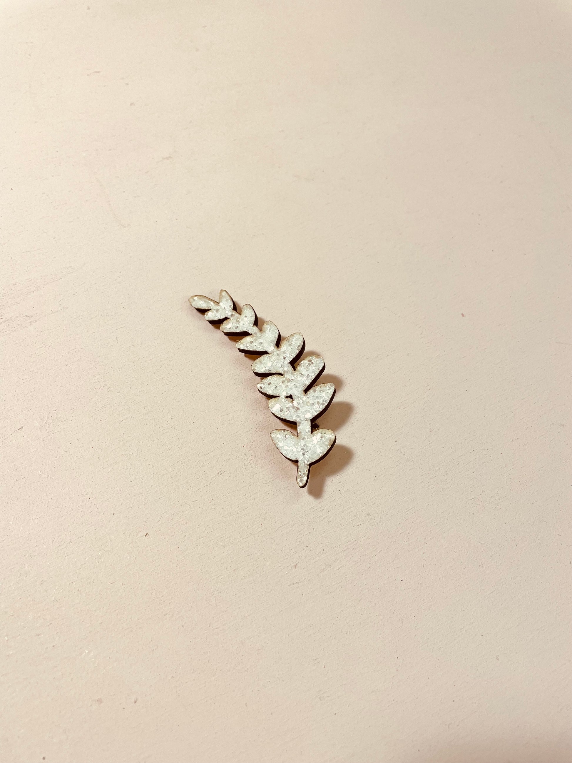 Cette broche en bois pailletée égaillera vos tenues.