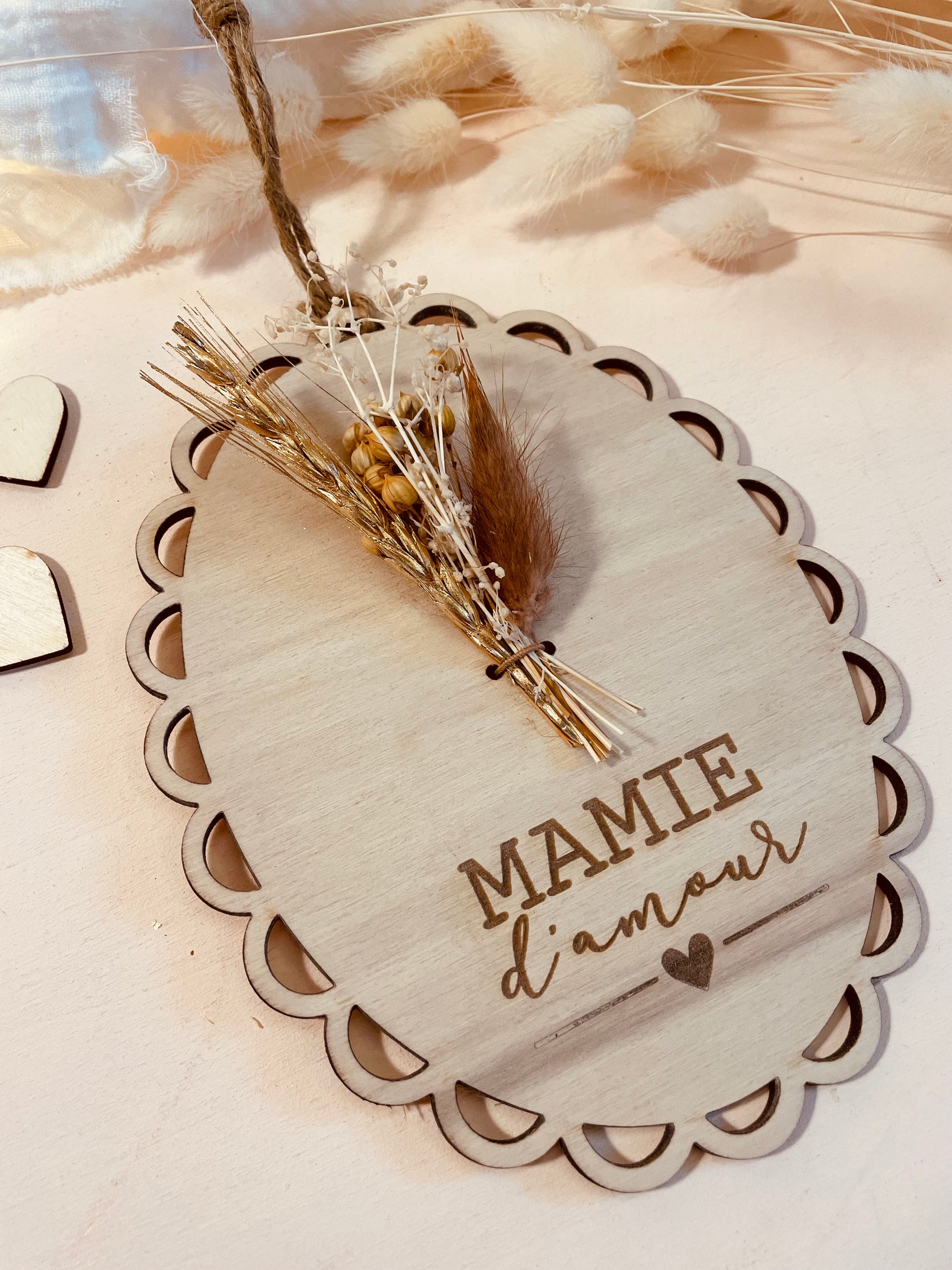 Vous pourrez offrir cette jolie décoration murale composé de fleurs séchées. Coup de cœur assuré pour votre mamie.