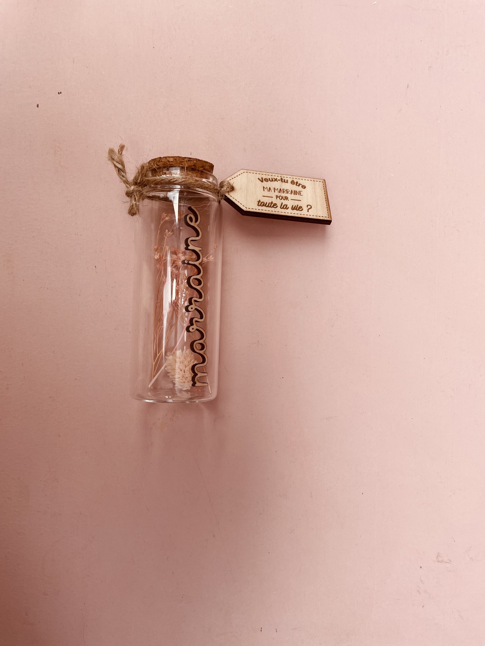 FIOLE FLEURS SÉCHÉES MARRAINE ET ETIQUETTE - PERSONNALISABLE