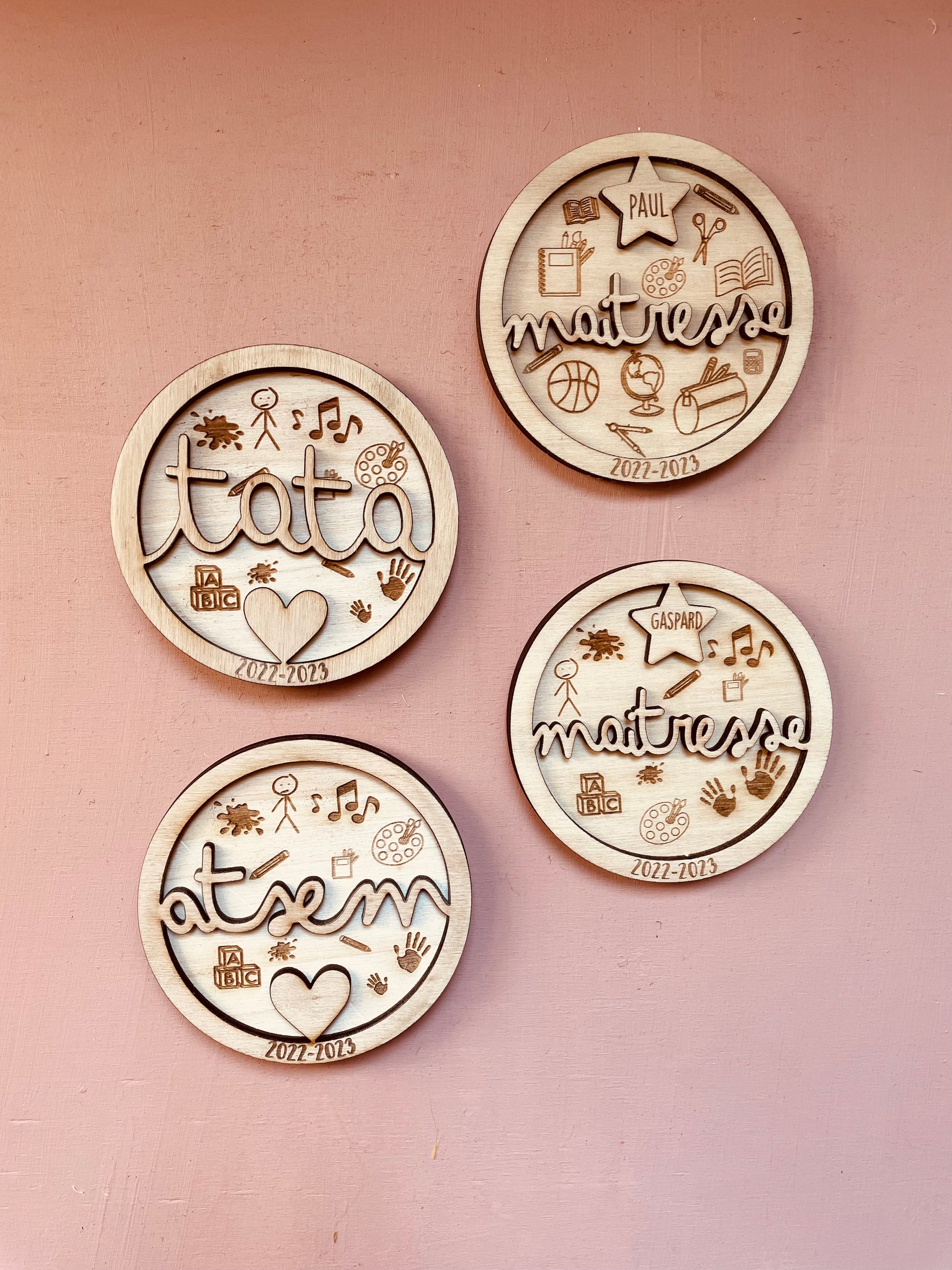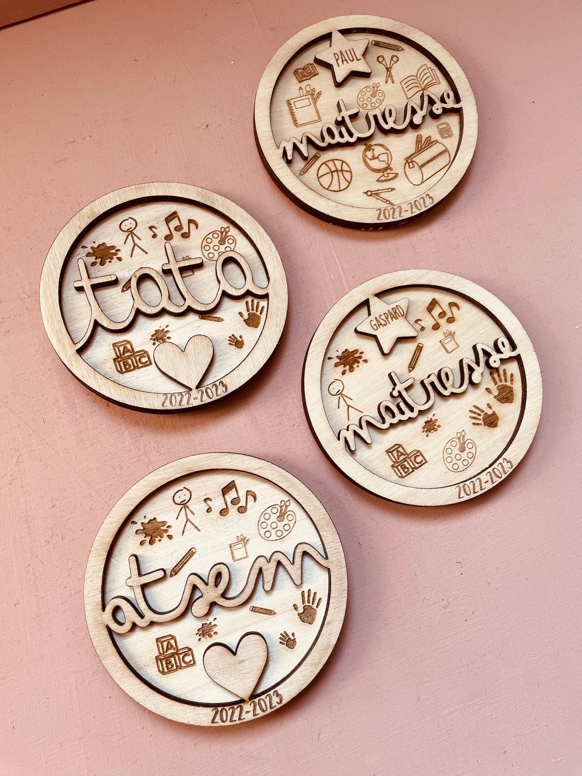 Ce joli magnet en bois personnalisé ravira votre maitre/maitresse/atsem à coup sûr. Cadeau orignal à offrir pour la fin de l'année scolaire.