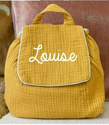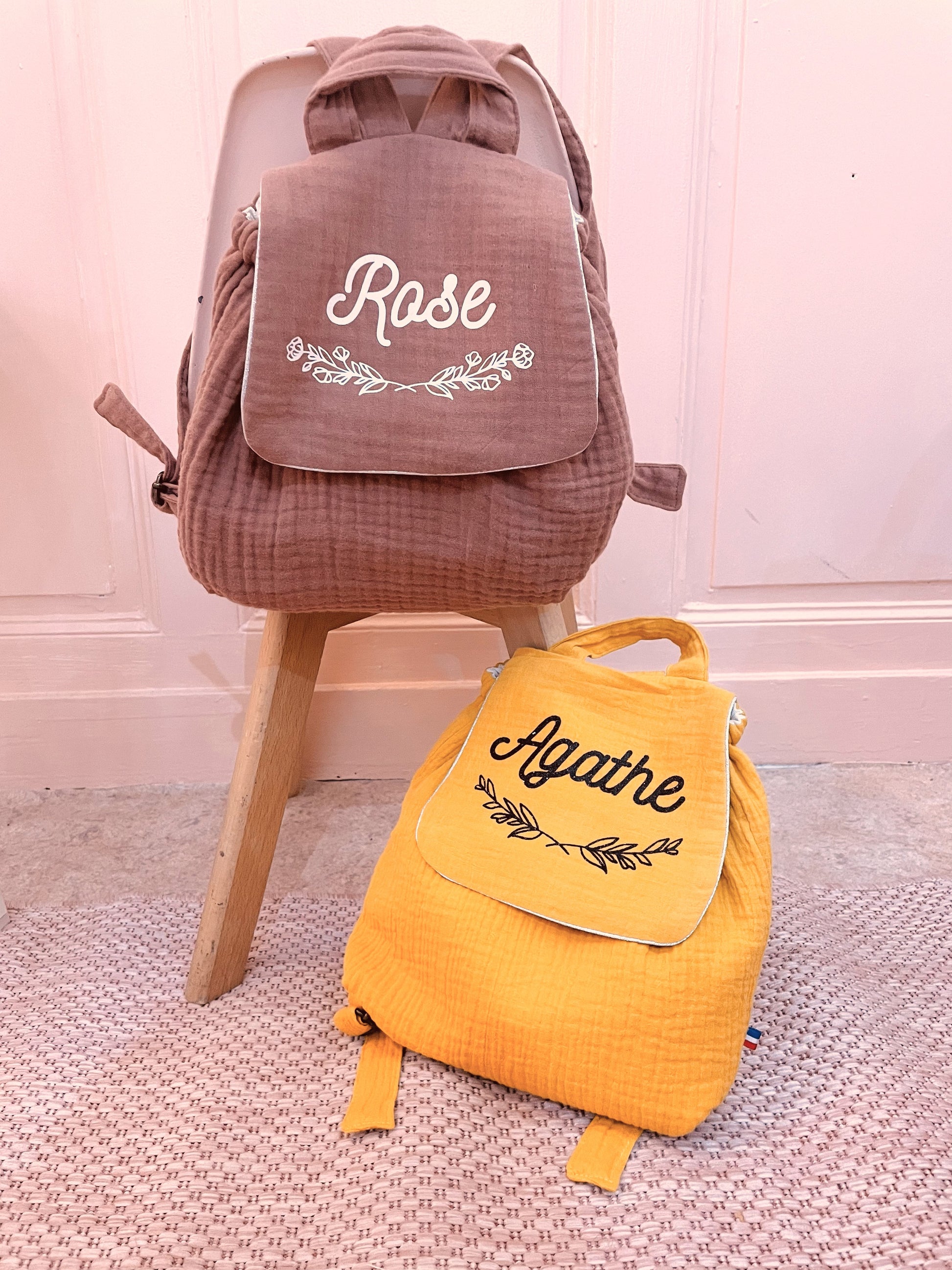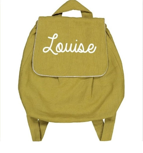 Un très joli sac à dos en lin français personnalisable dans lequel on peut transporter un goûter pour les sorties en famille, des affaires de rechanges pour les premières années à l’école, et tétine/doudou quand on part en vadrouille.
