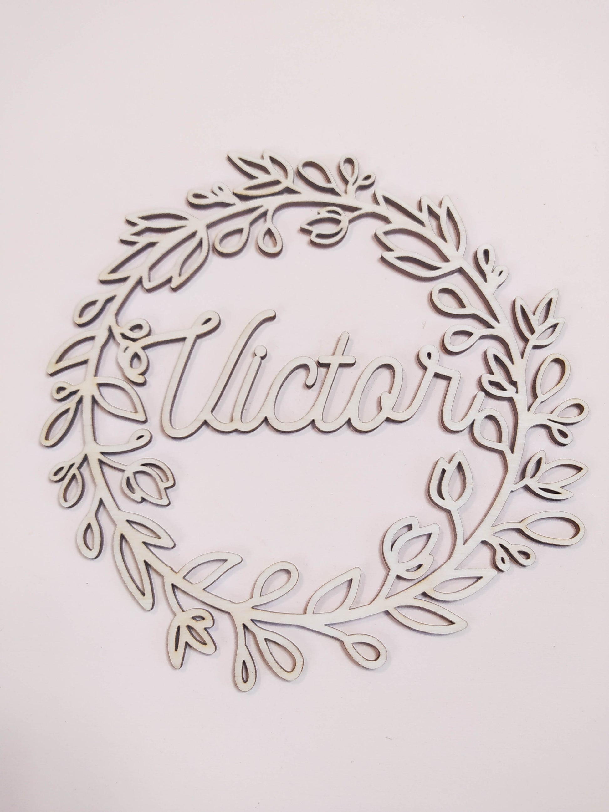 Craquez pour cette jolie couronne en bois avec le prénom ou le mot de votre choix, qui donnera une touche unique à votre décoration.
