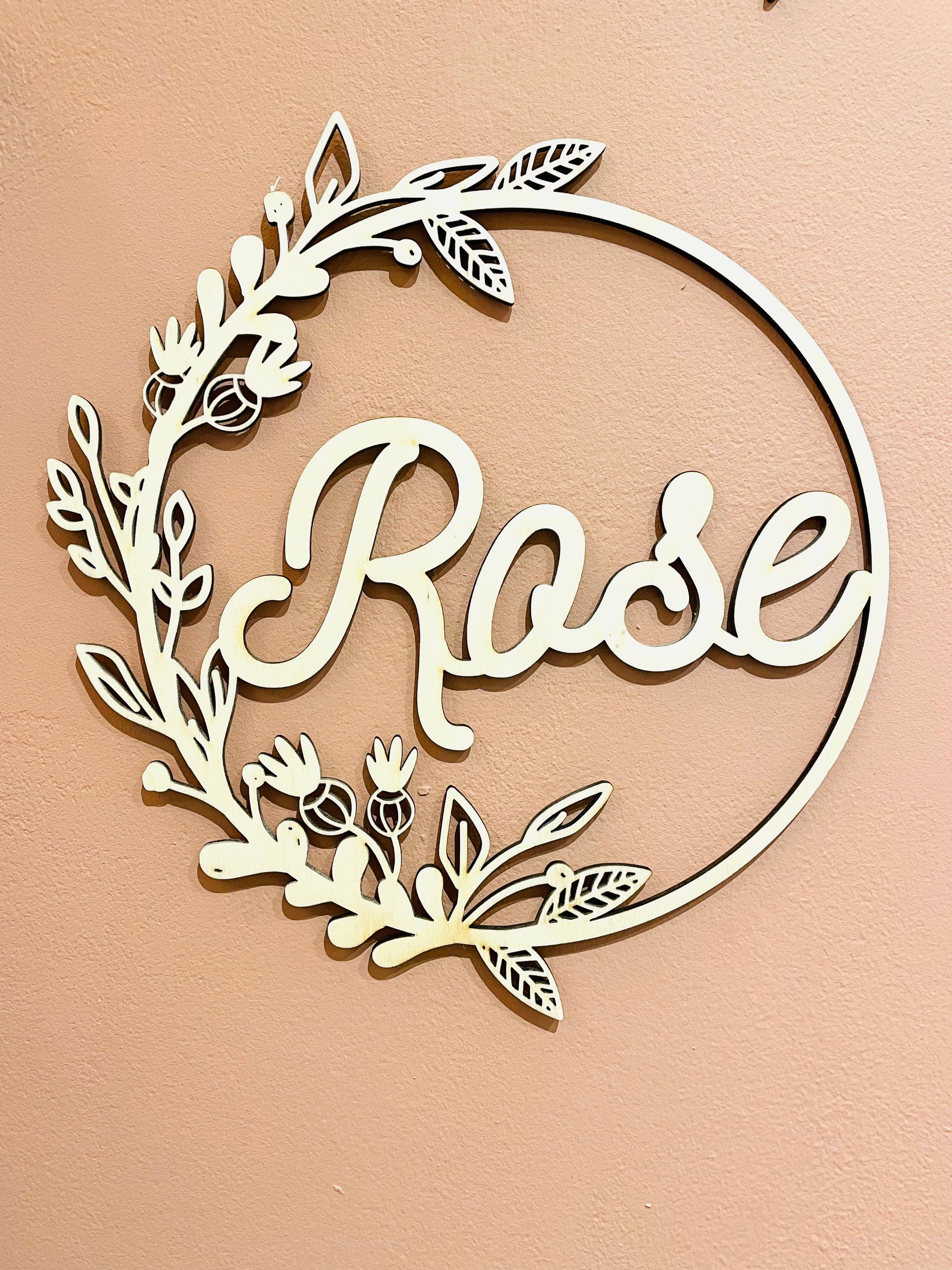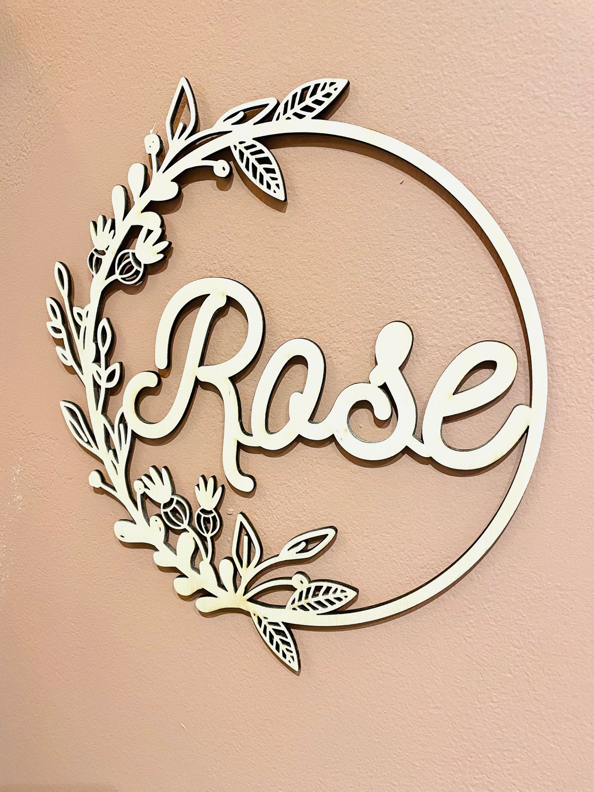 Craquez pour cette jolie couronne en bois avec le prénom ou le mot de votre choix, qui donnera une touche unique à votre décoration.