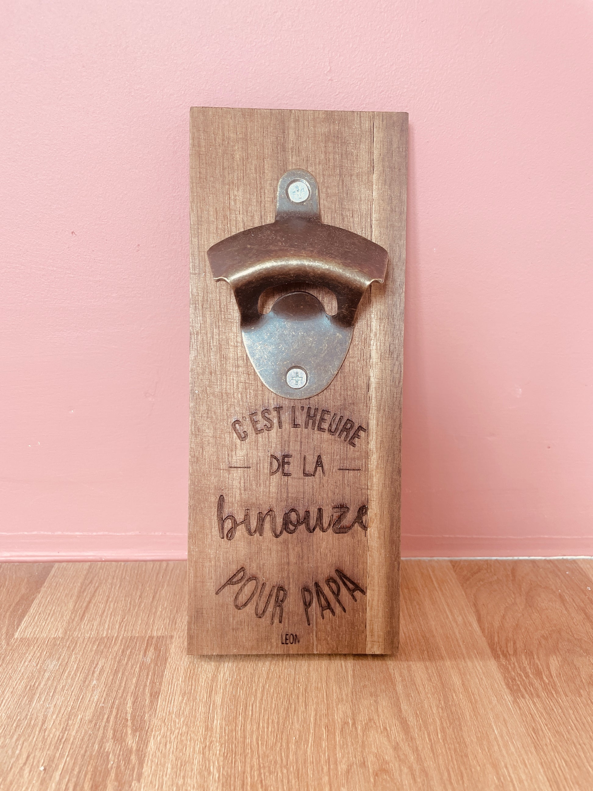 Opter pour ce décapsuleur mural à personnaliser pour célébrer la fêtes de nos papas ou papy chéris !