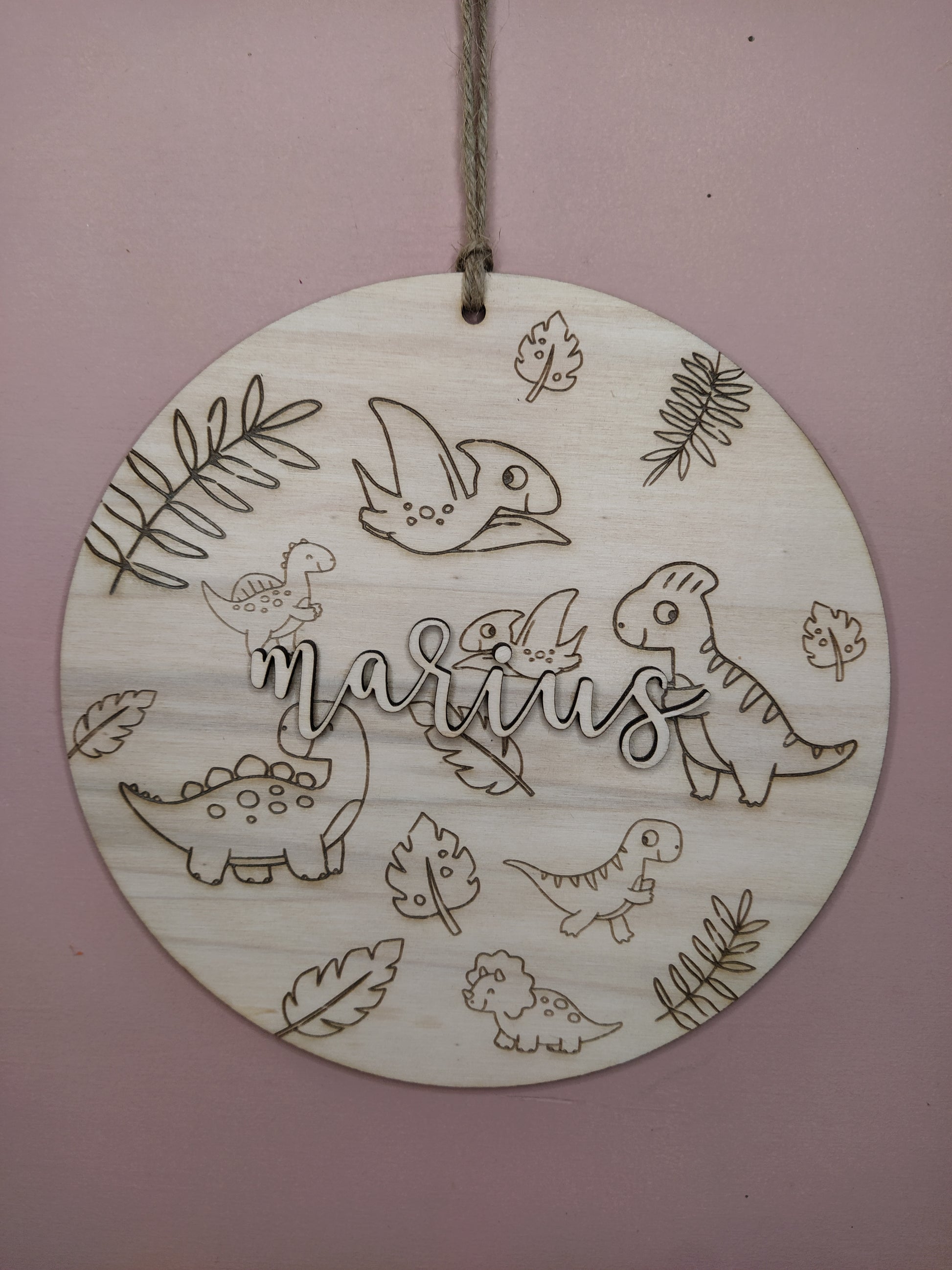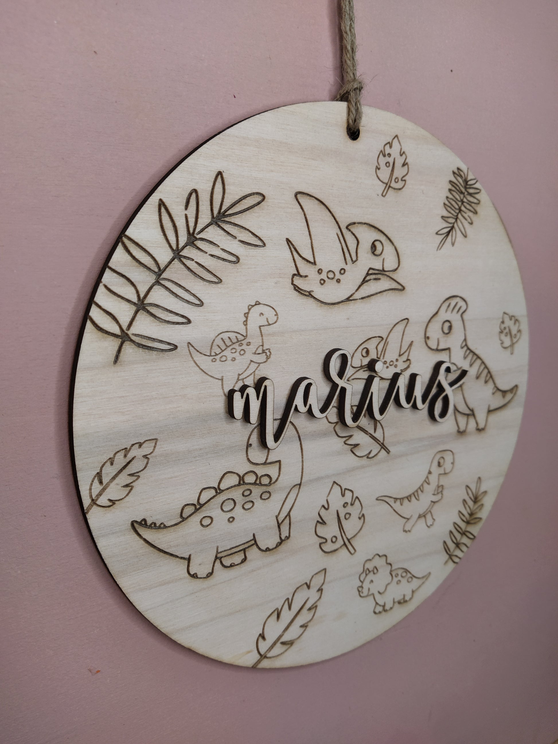 Craquez pour cette décoration murale avec ses petits dinosaures au prénom de votre enfant.