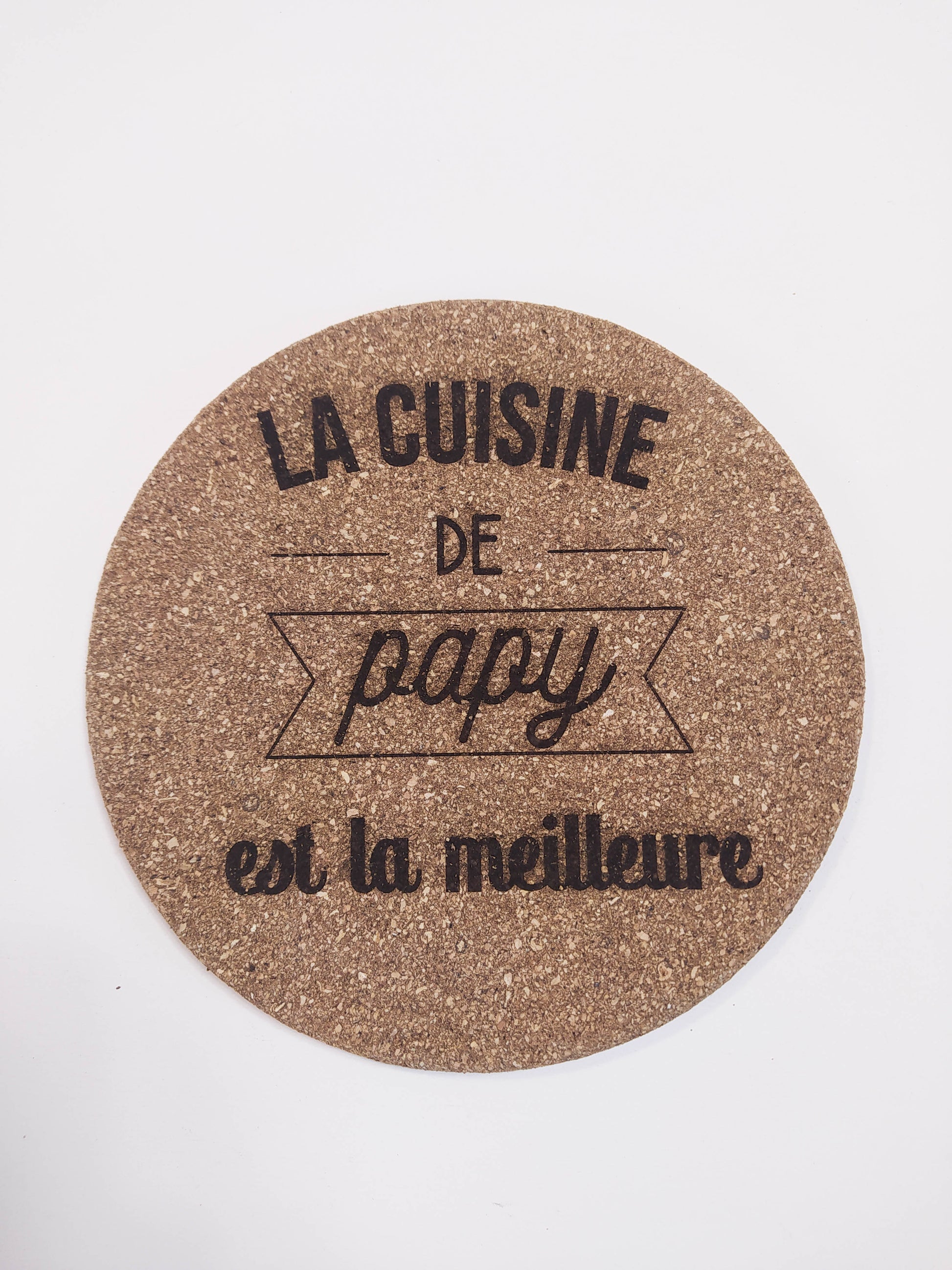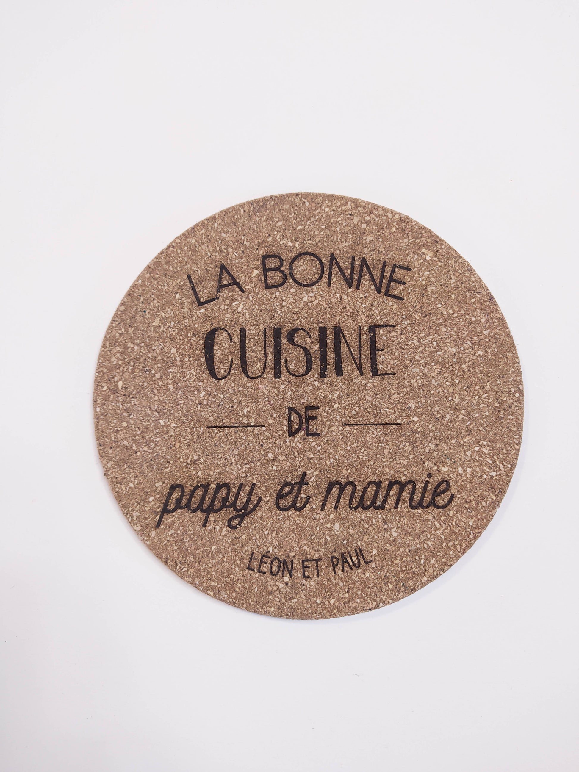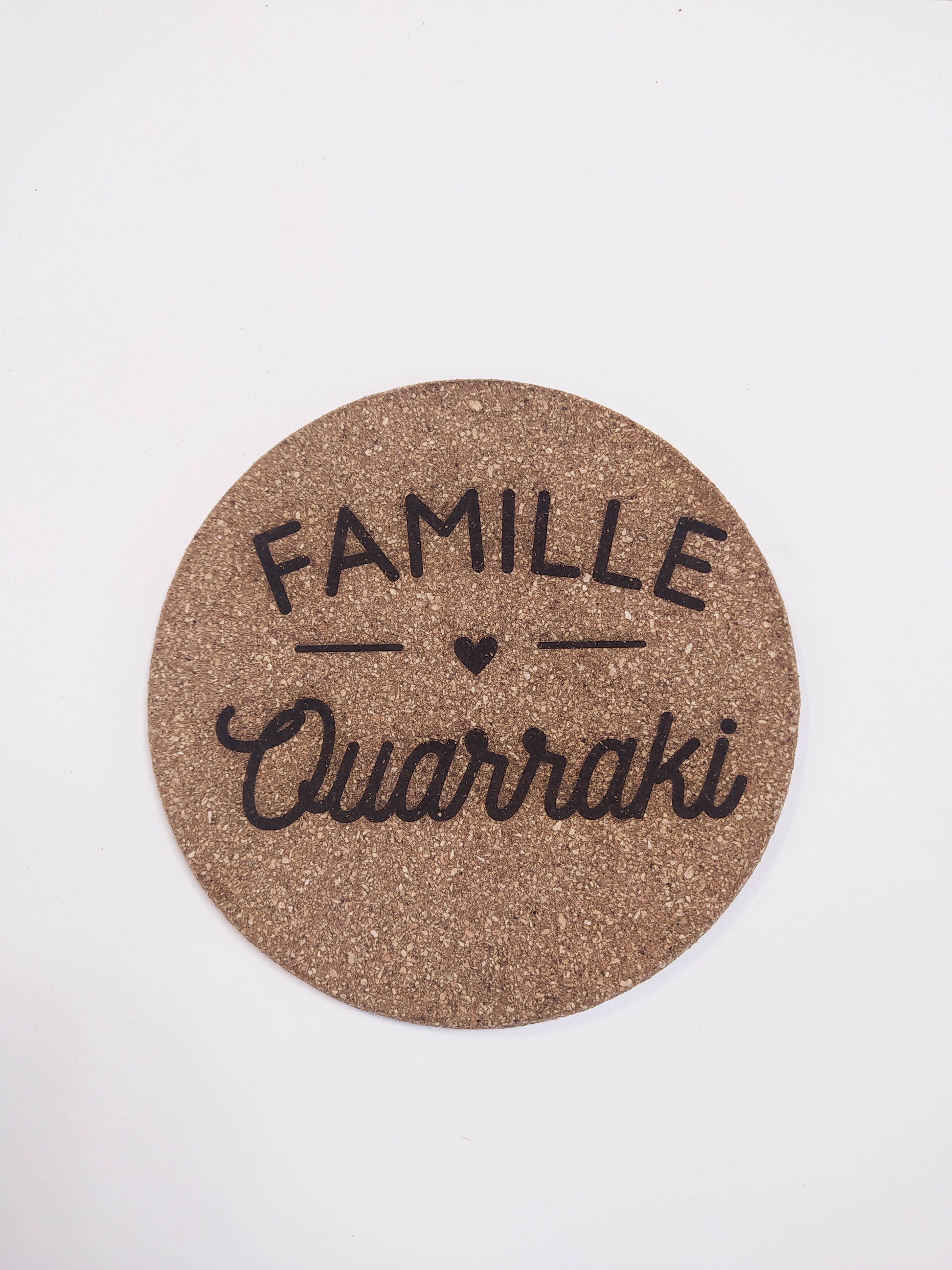 Dessous de plat rond en liège personnalisable.