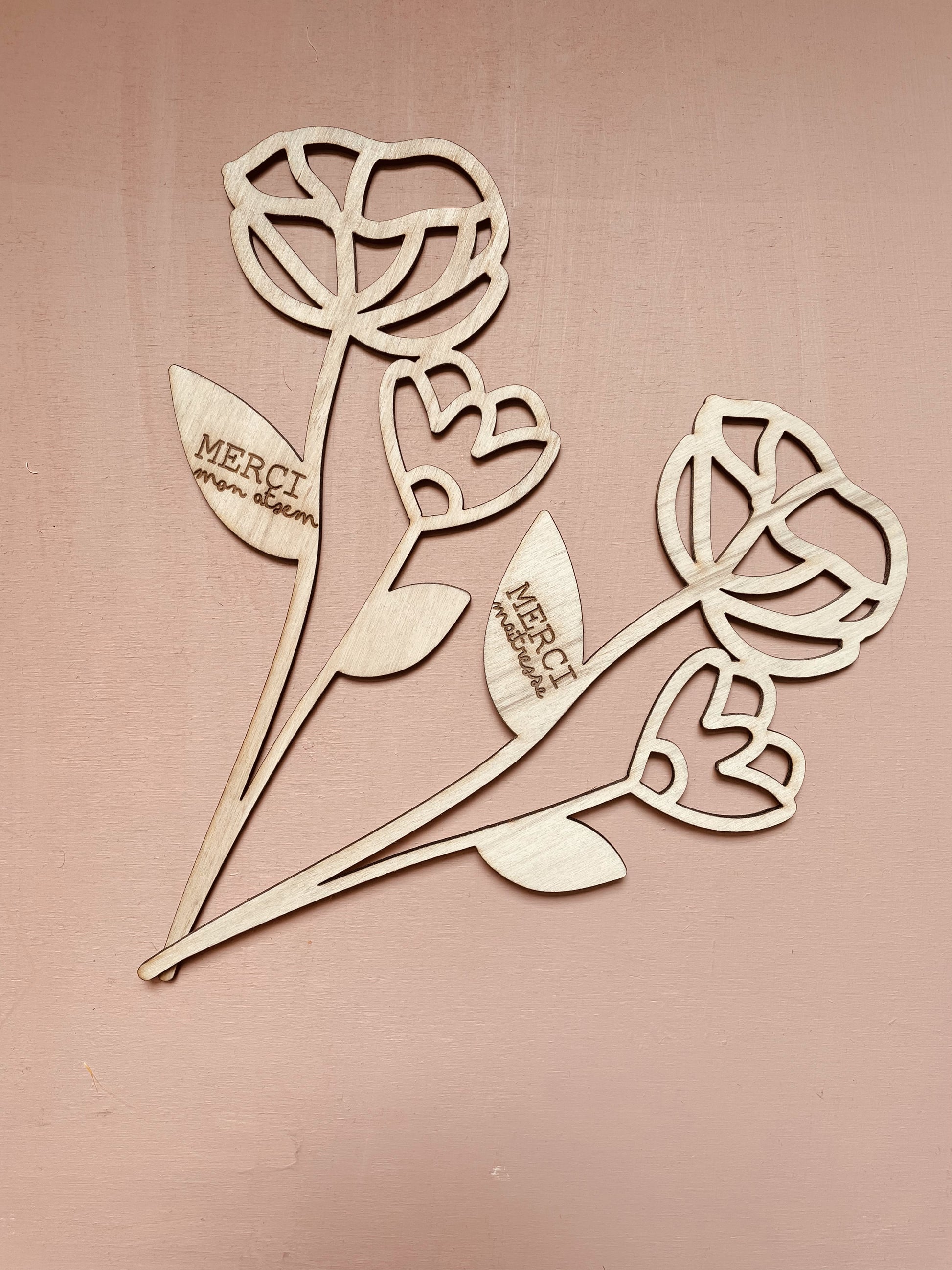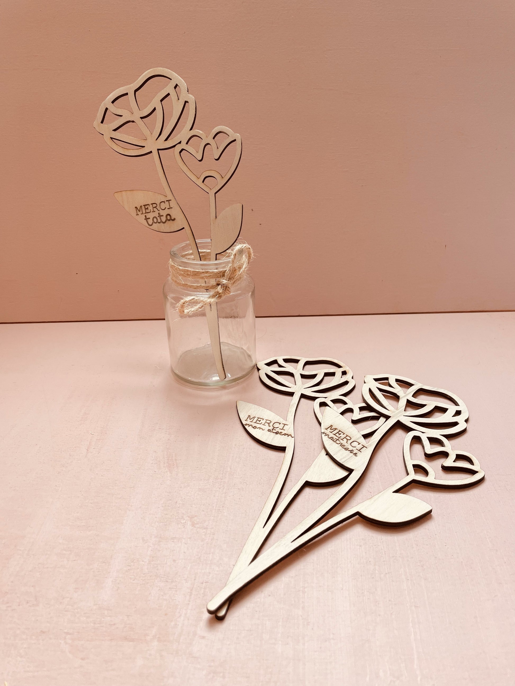 La fleur en bois est une alternative déco pour ceux qui n'ont pas la main verte. Elles sera un cadeau unique et durable pour remercier les tatas, maîtresses, atsem, aesh