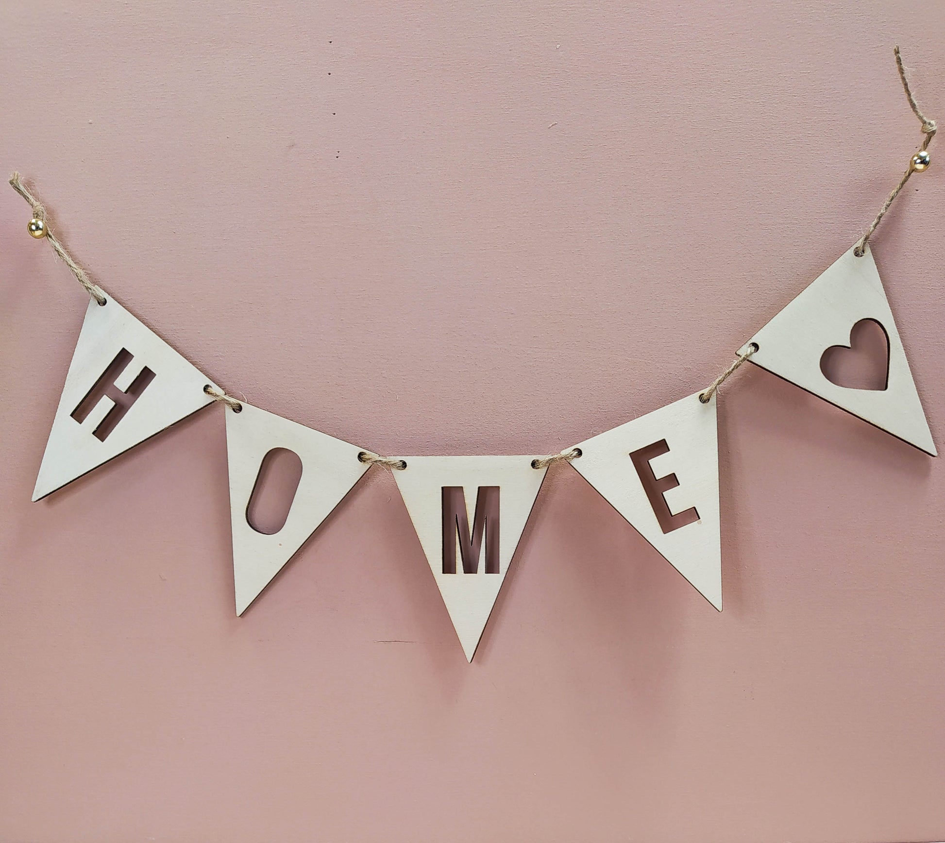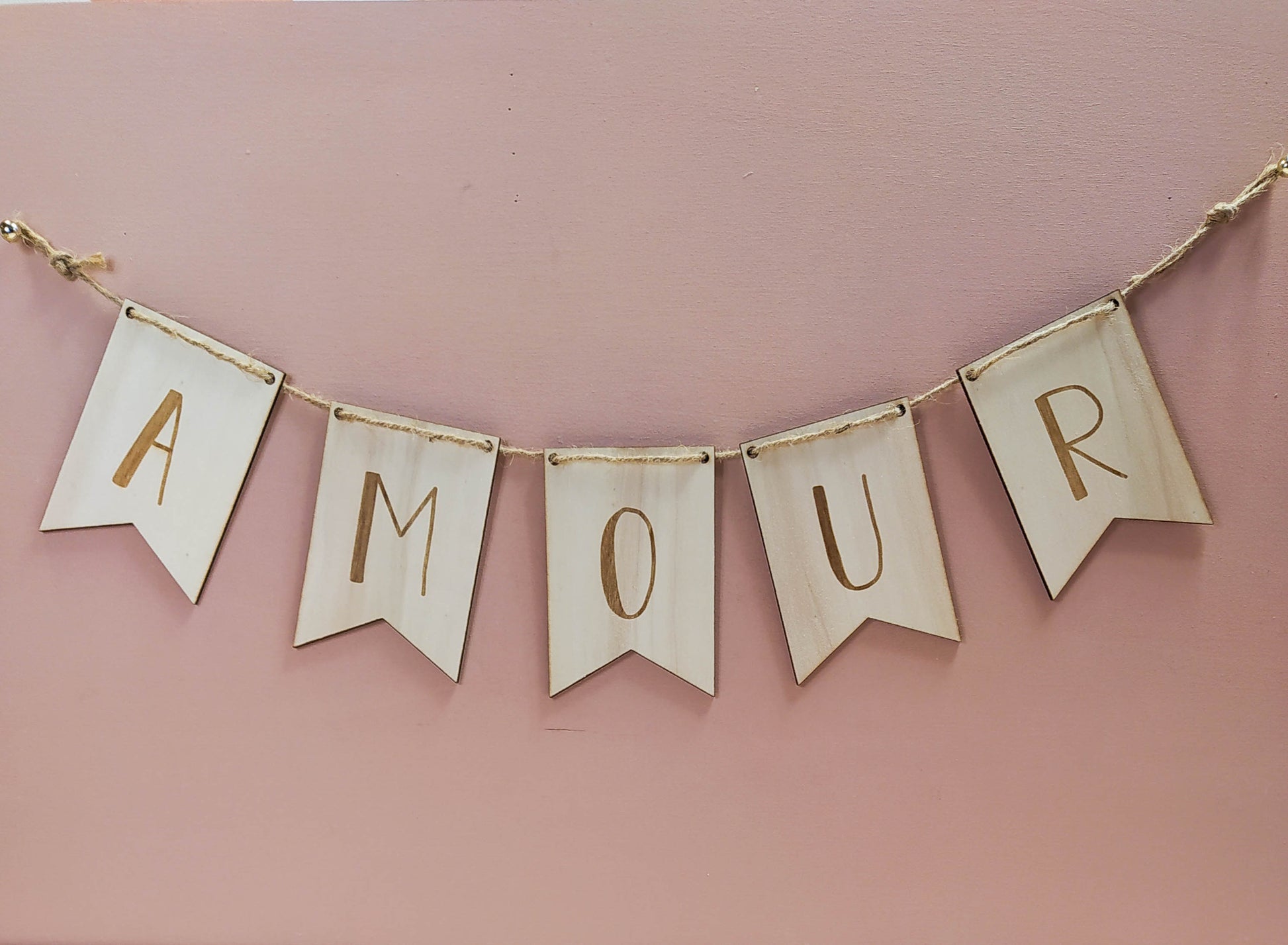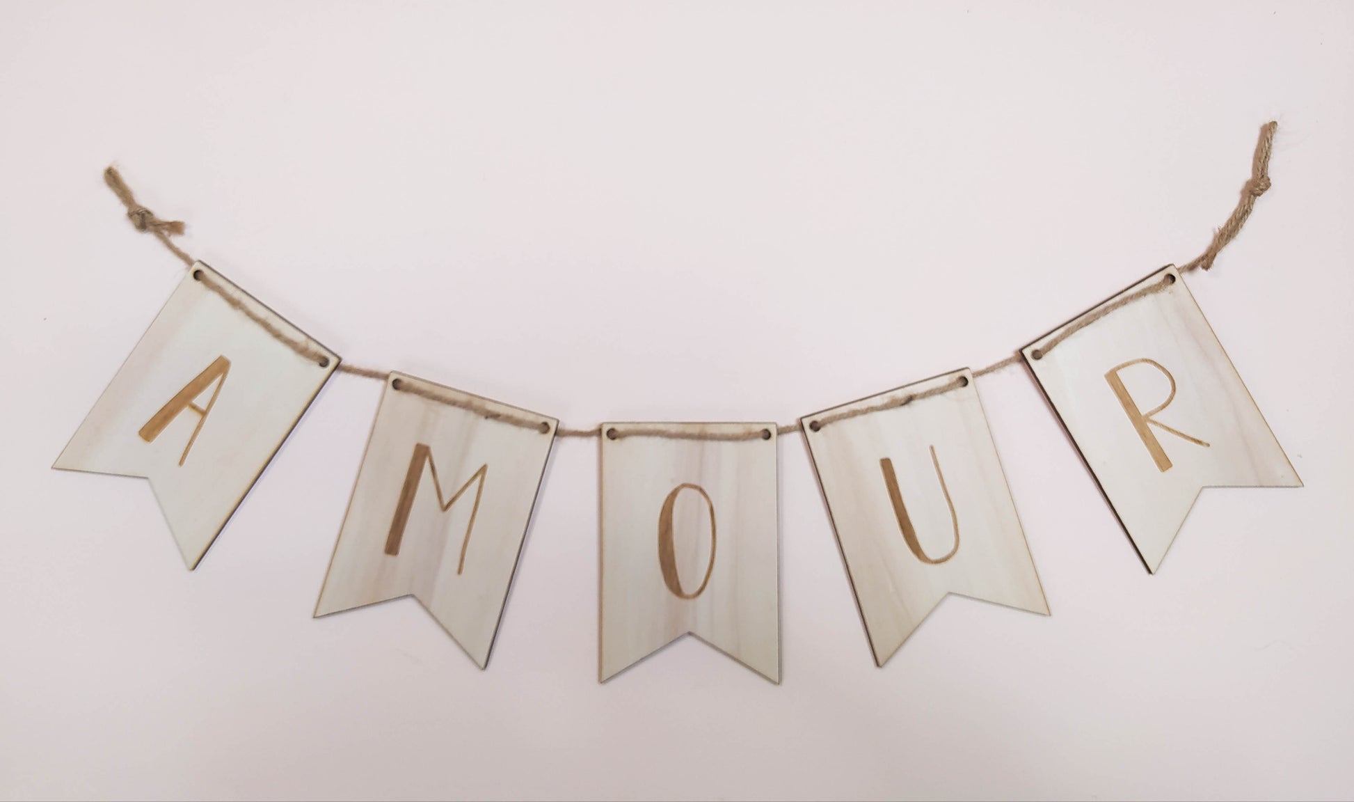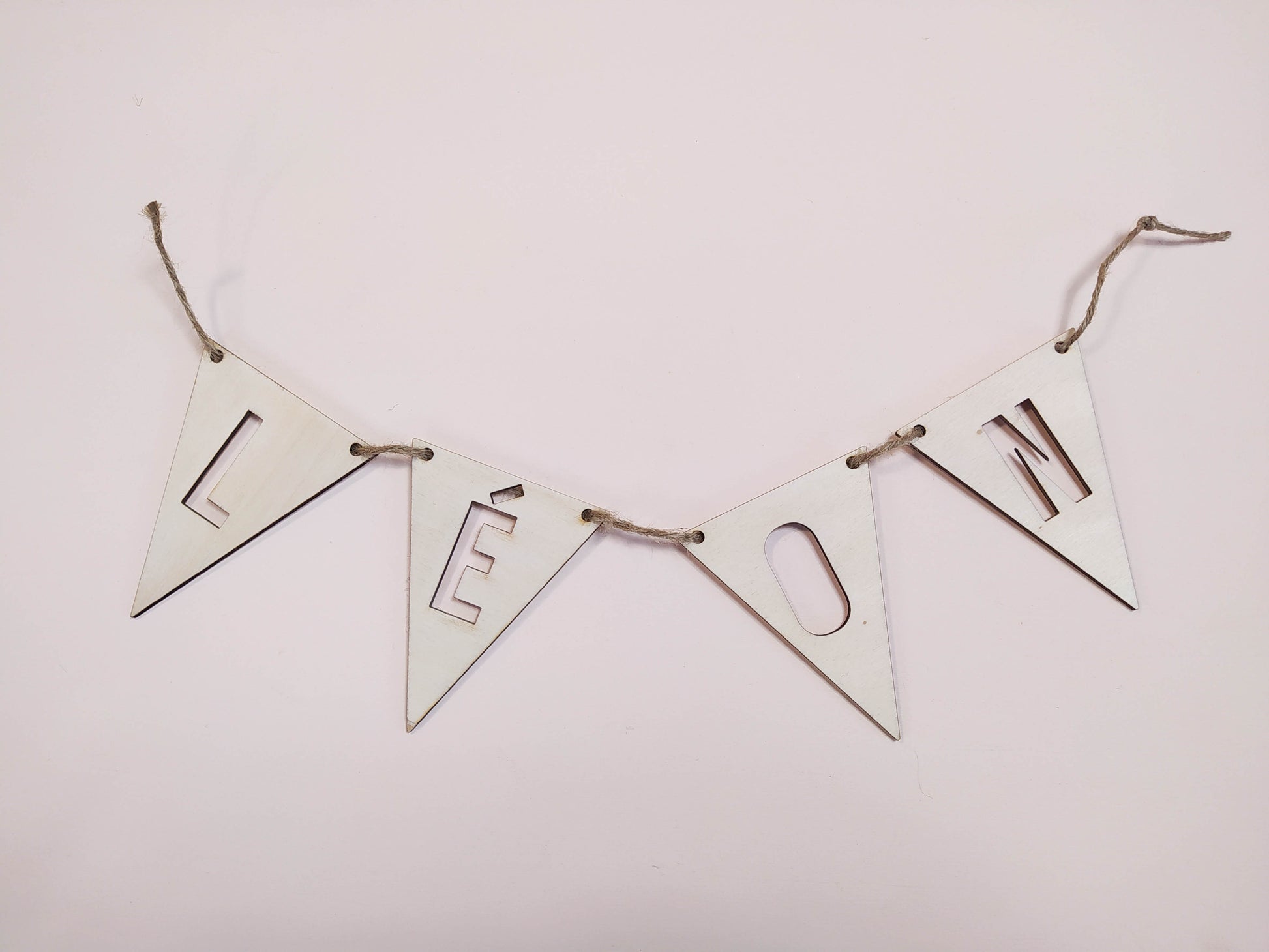 Composez votre guirlande avec ces jolis fanions en bois de lettres gravés.