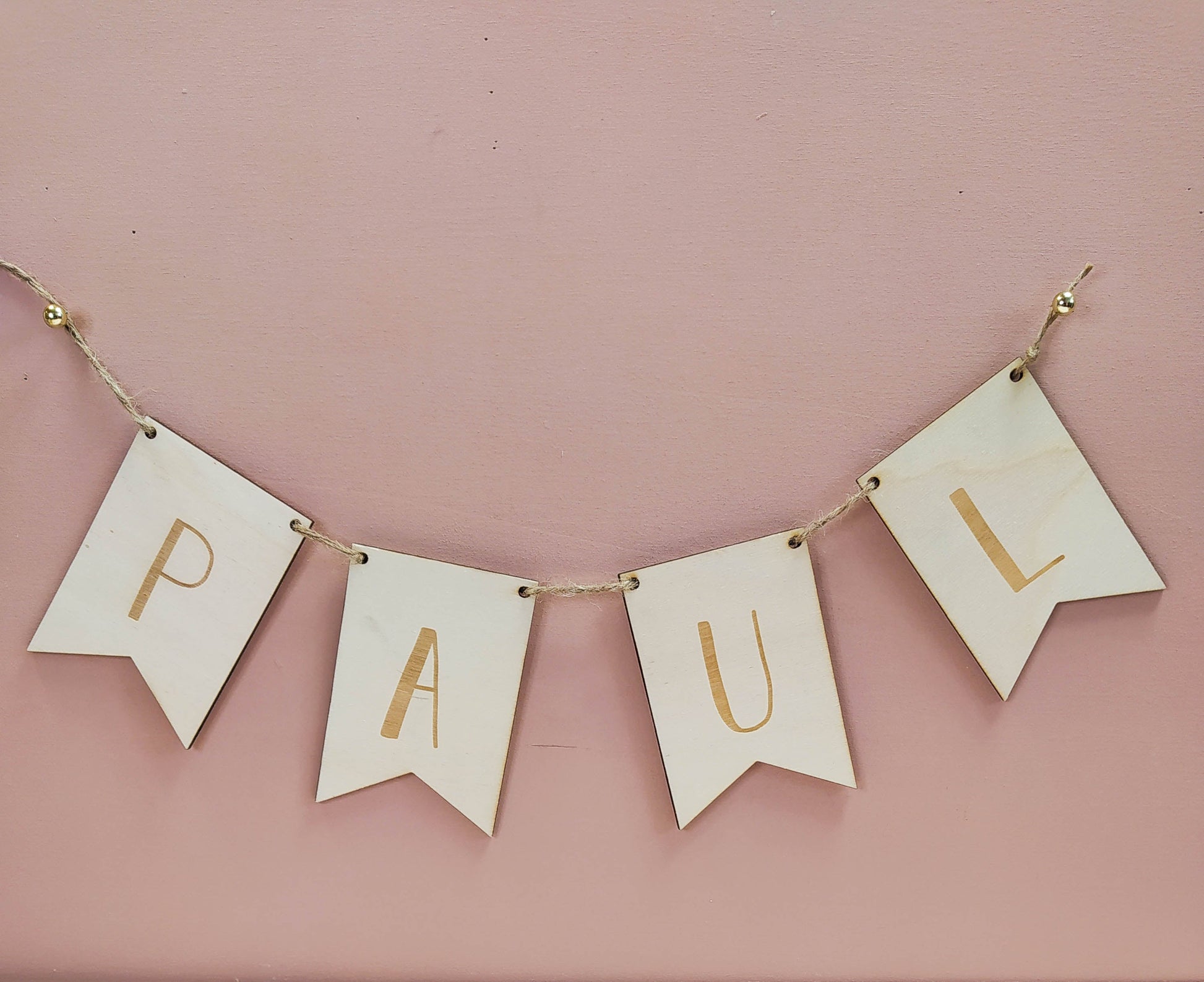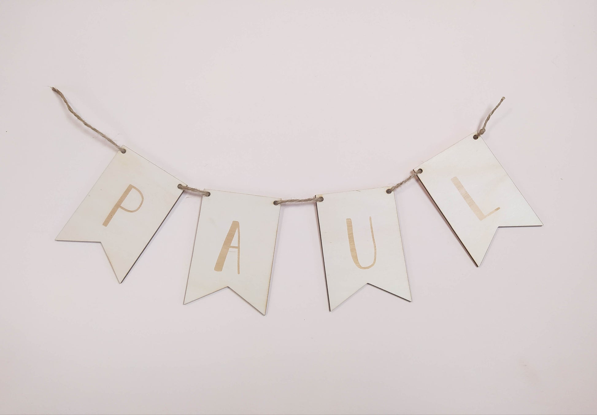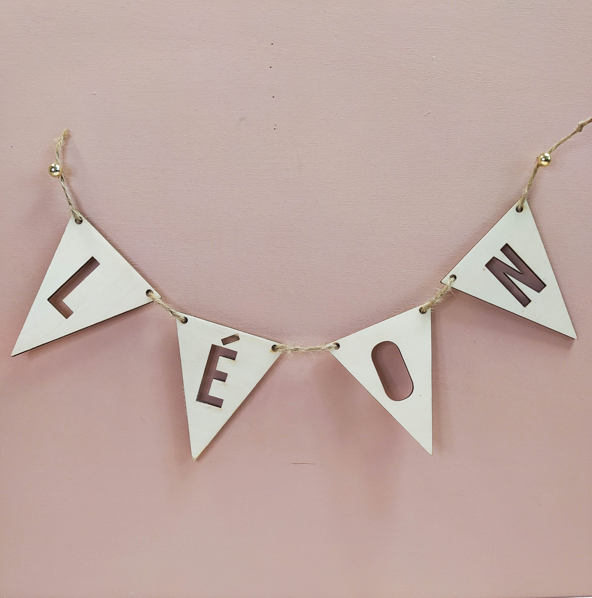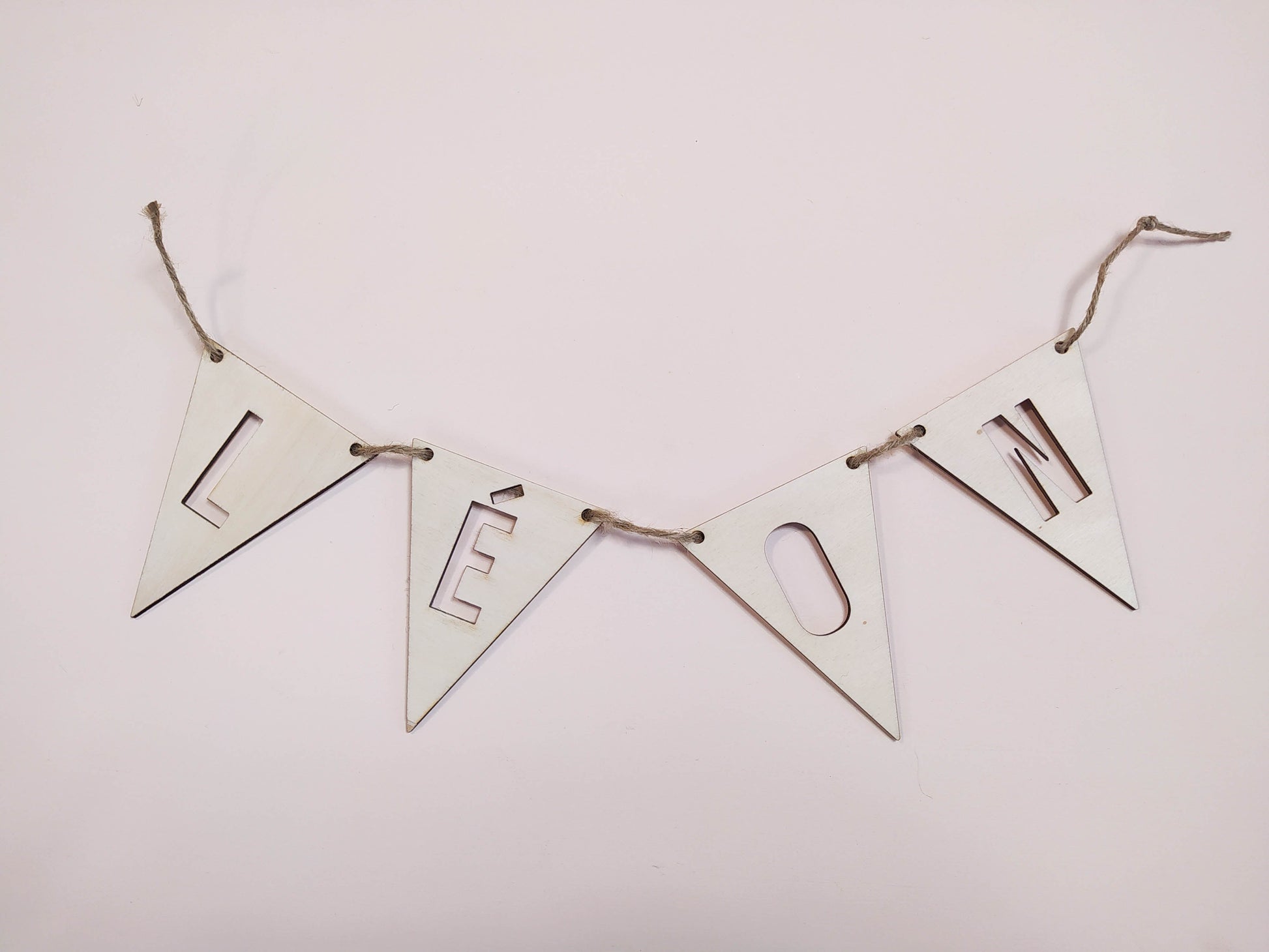 Composez votre guirlande avec ces jolis fanions en bois de lettres gravés.