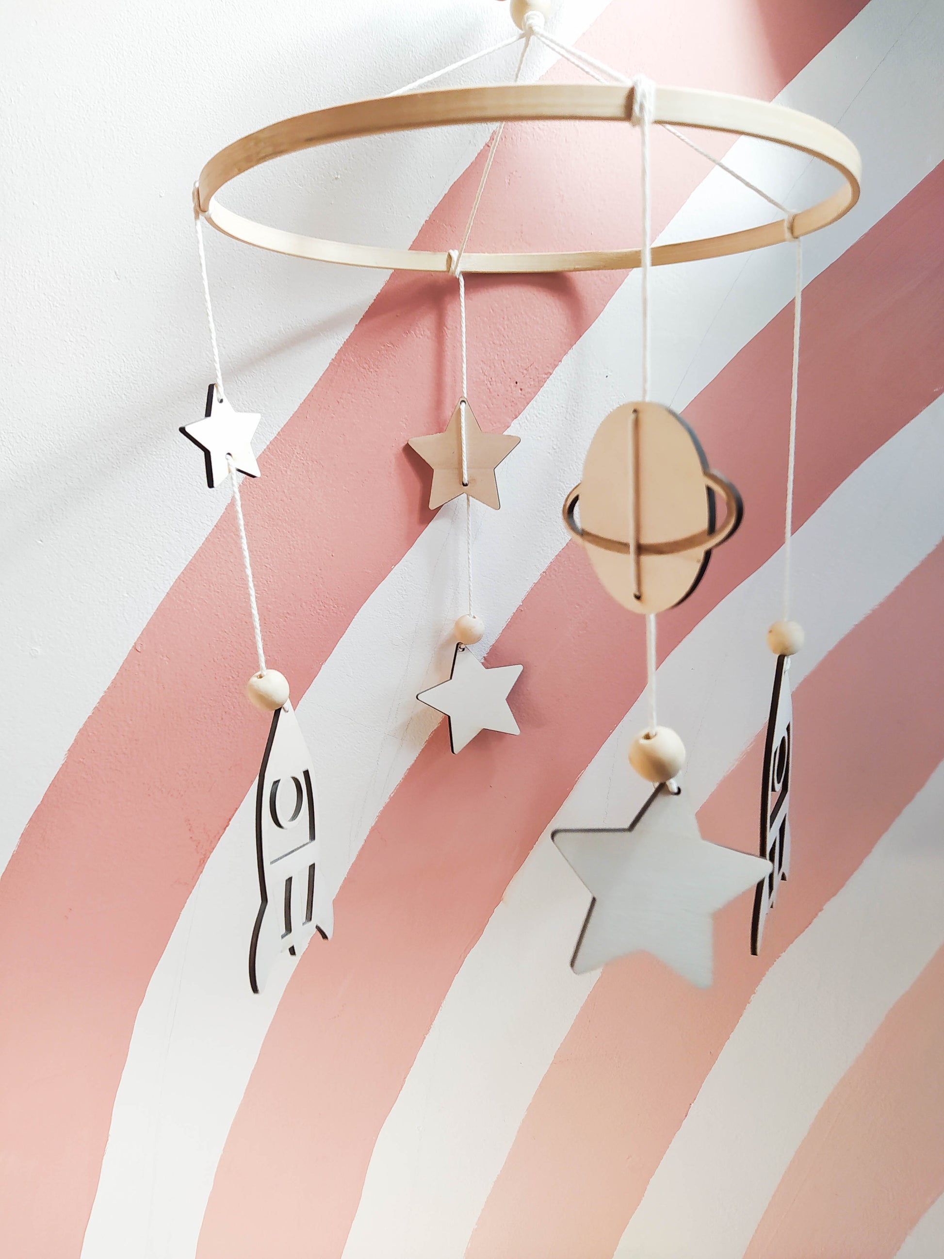 Ce joli mobil amènera de la douceur et poésie dans la chambre de bébé, accroché au dessus du lit, de la table à langer ou juste en décoration, il trouvera toujours sa place dans votre intérieur.