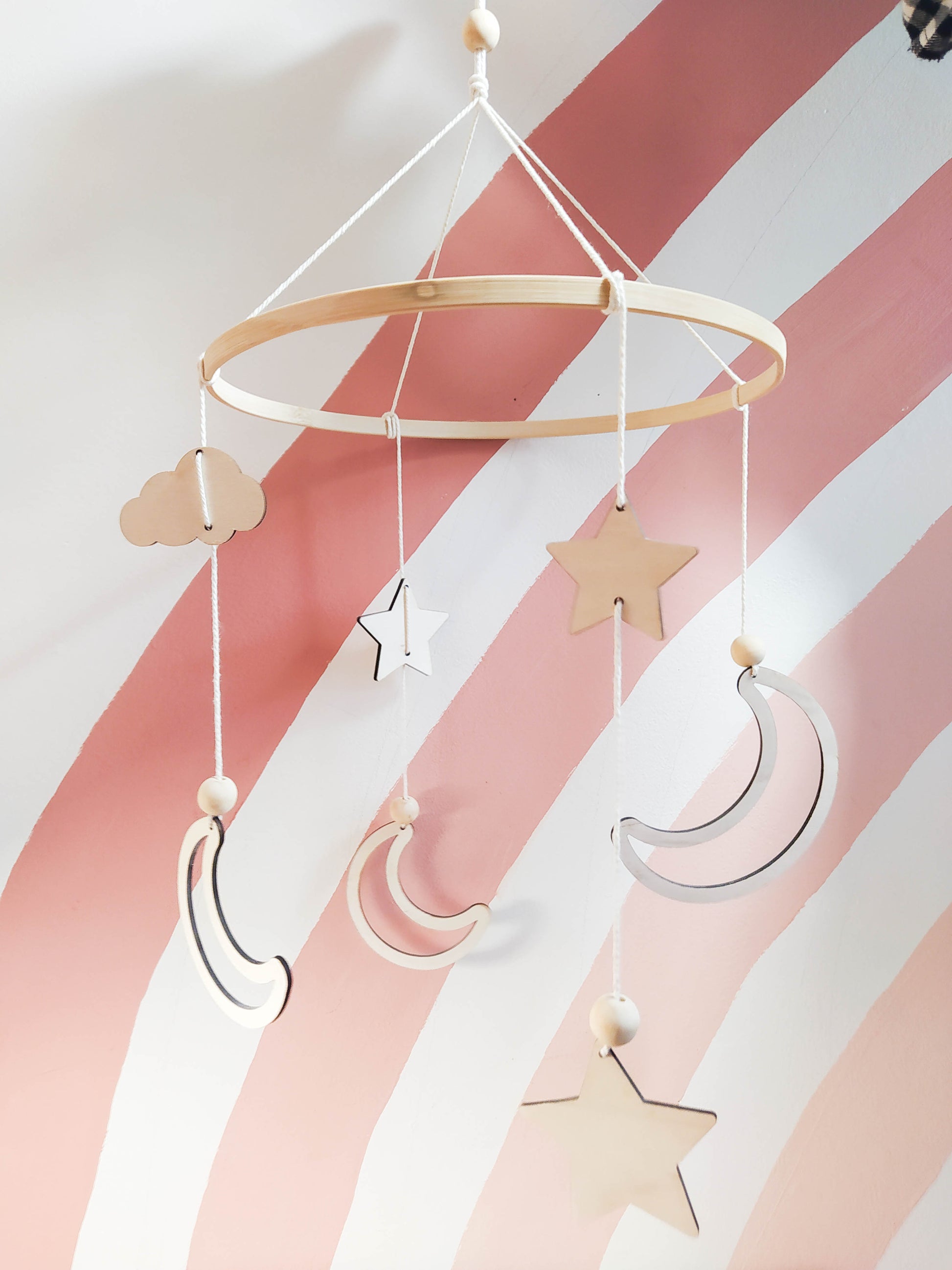 Ce joli mobil amènera de la douceur et poésie dans la chambre de bébé, accroché au dessus du lit, de la table à langer ou juste en décoration, il trouvera toujours sa place dans votre intérieur.