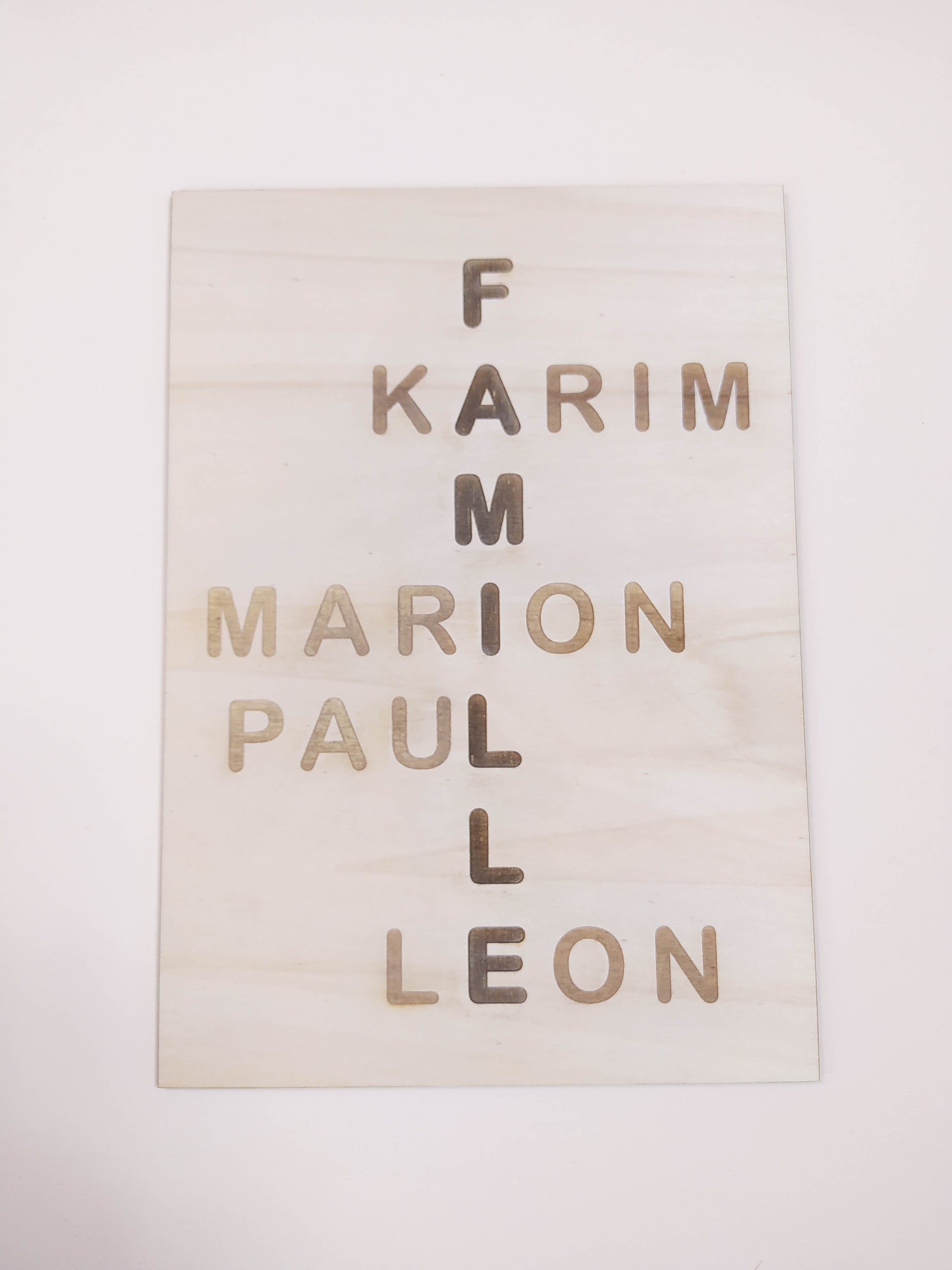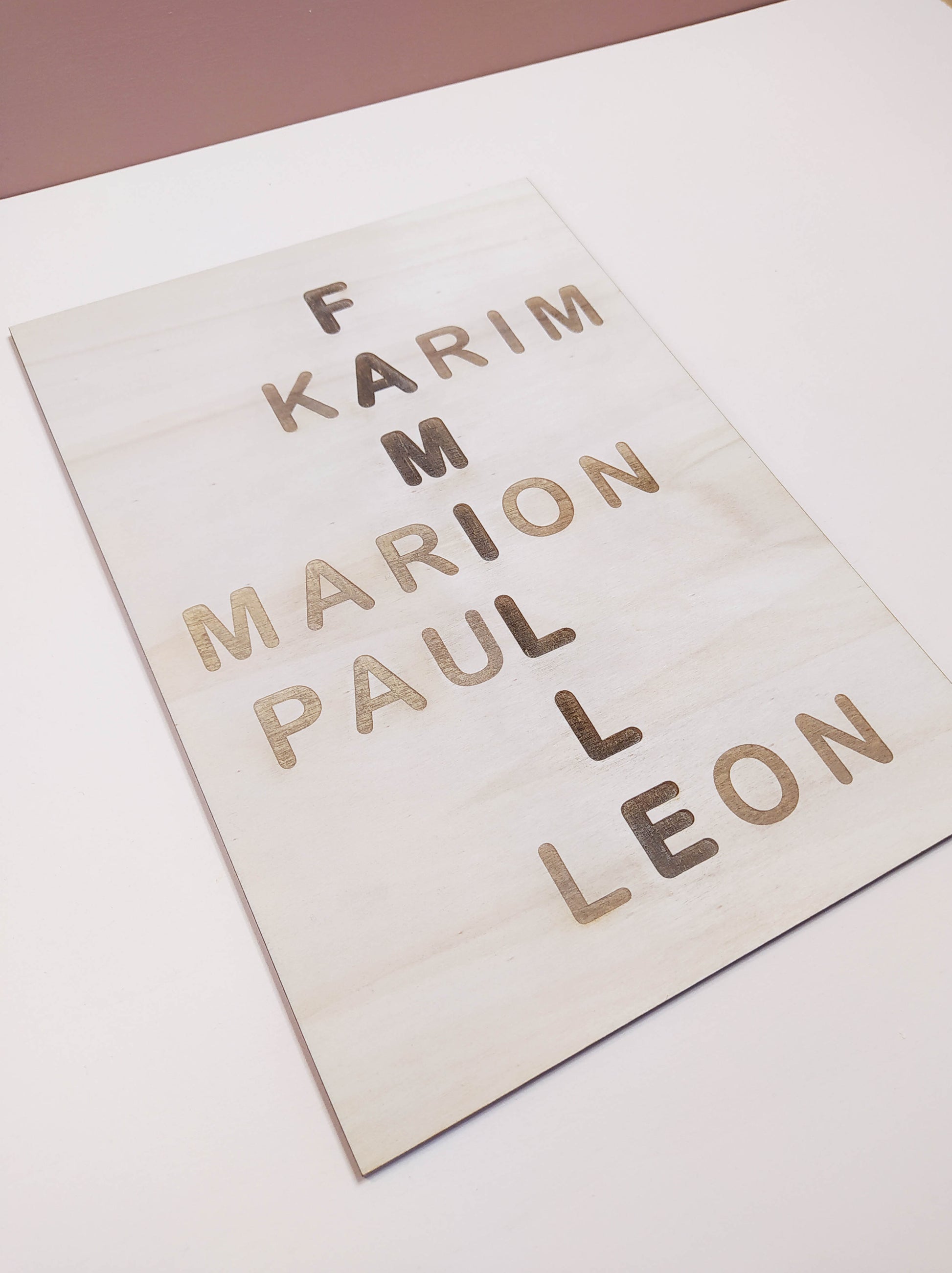 *Le bois étant une matière naturelle, des nuances peuvent être présentes sur les panneaux ou la gravure. Photo non contractuelle.