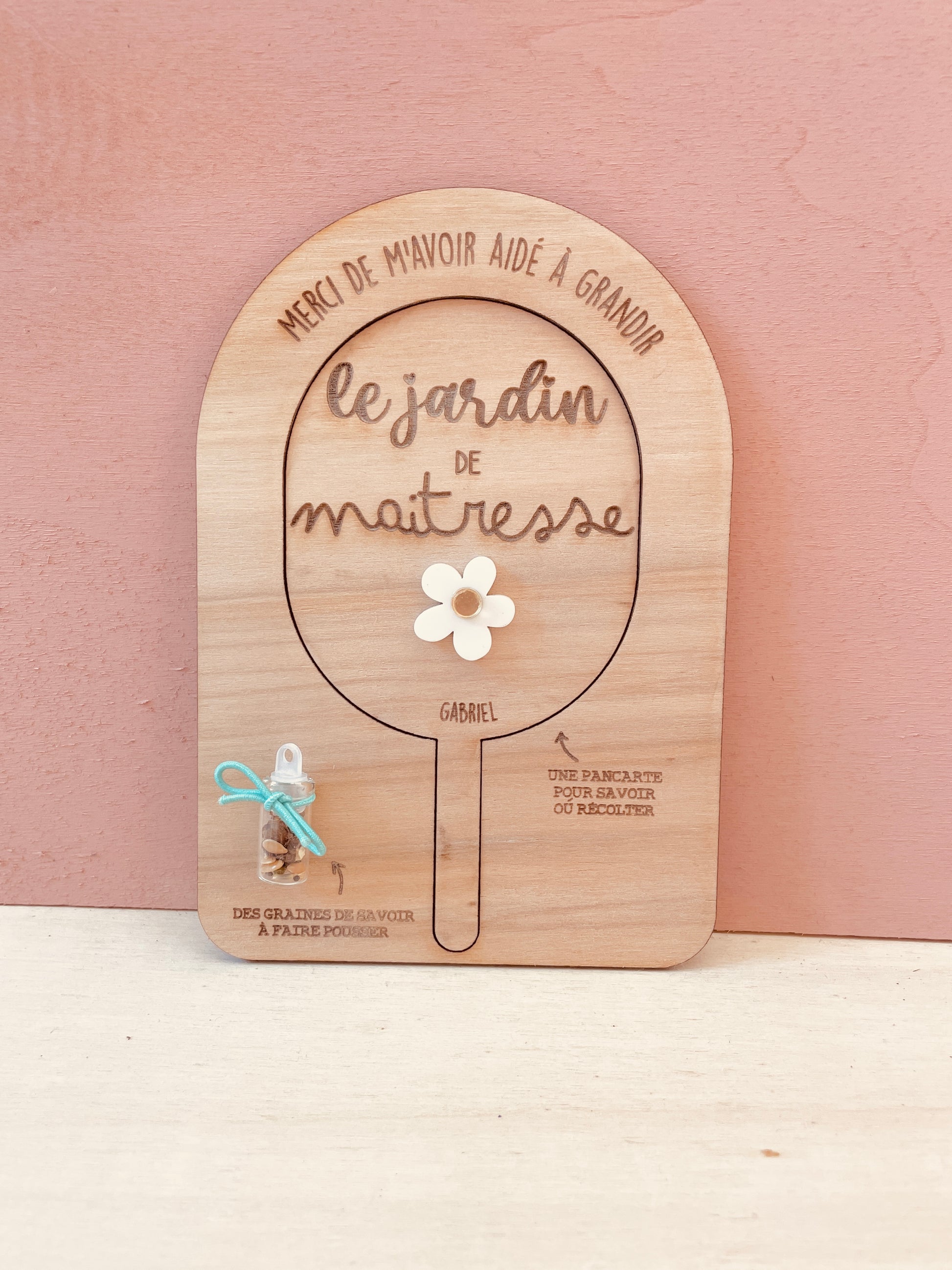 Cette petite carte à offrir à votre maitresse, atsem, nounou, aesh . Elle est composée d'un pic à planter pour le jardin ainsi qu'une petit fiole remplie de plein graines à planter.