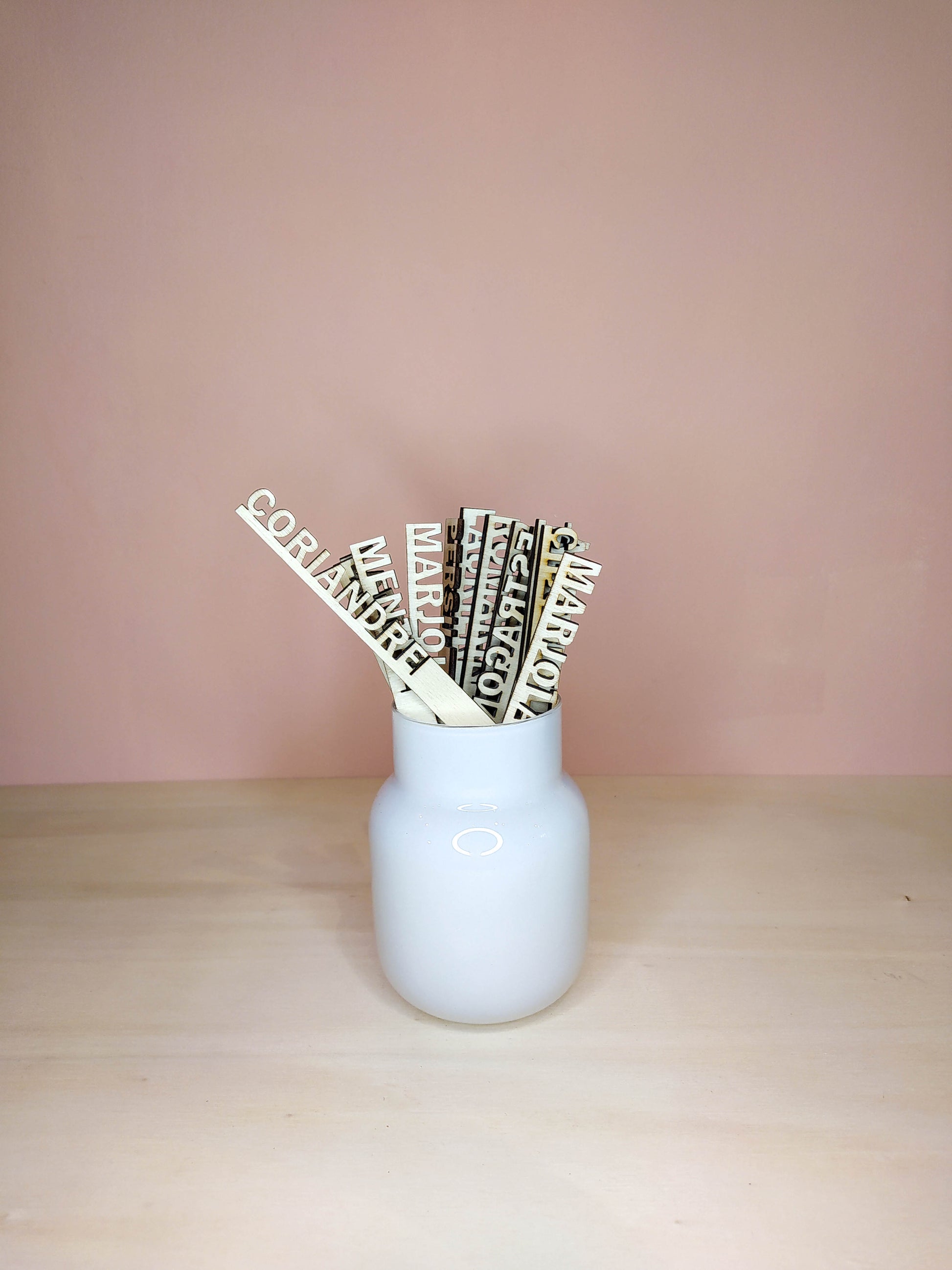Pour tous les amateurs de jardinage, c'est petits pics en bois marqueront vos herbes aromatiques afin de garder une trace de l’endroit où vos herbes poussent et pour ajouter un peu de décoration dans vos plantations.