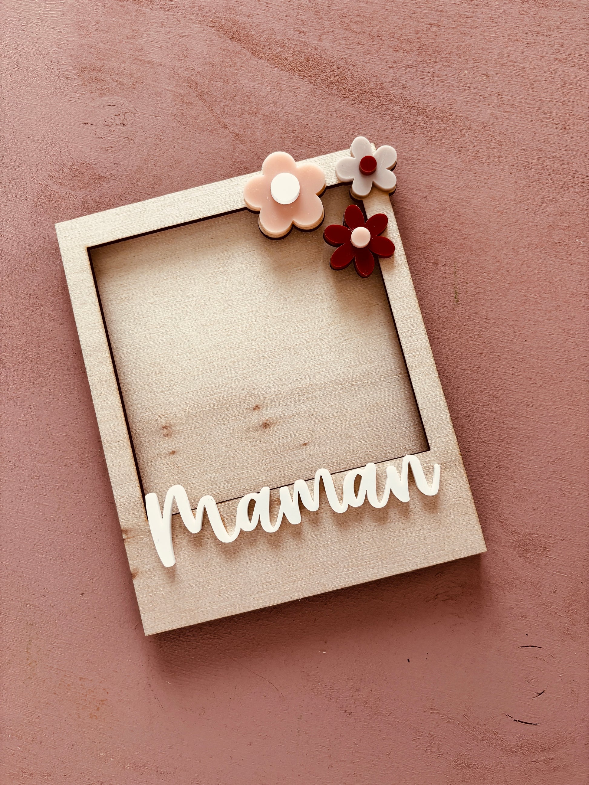 Vous cherchez un cadeau originale et fleurit pour votre mamie / maman ? Choisissez ce polaroid ou vous pourrez y glisser une photo.