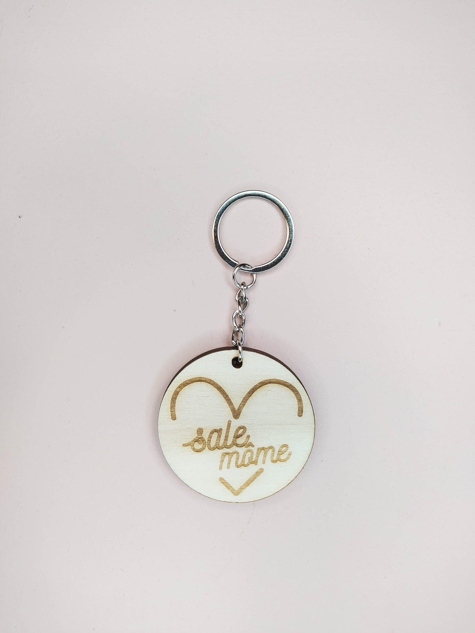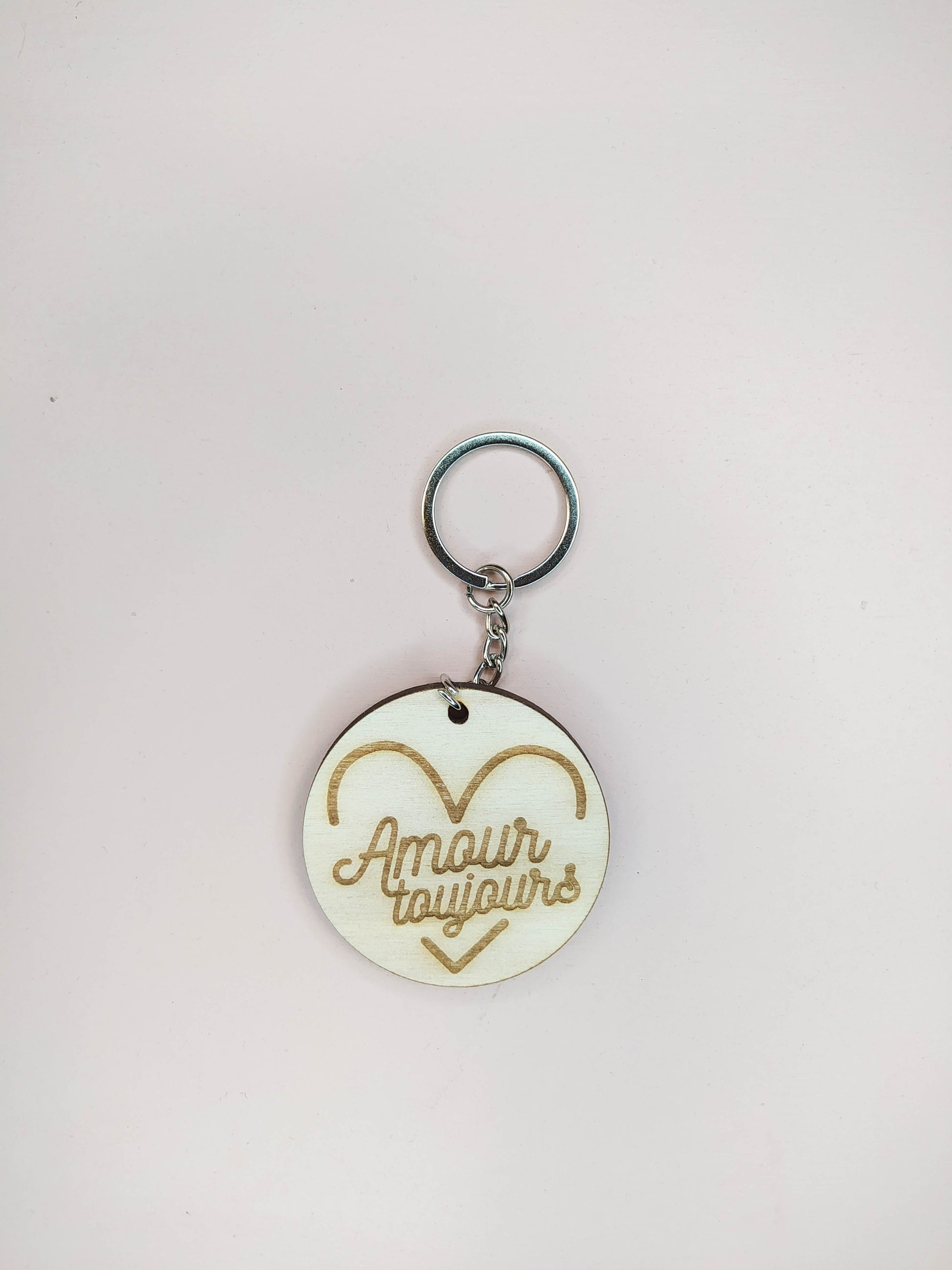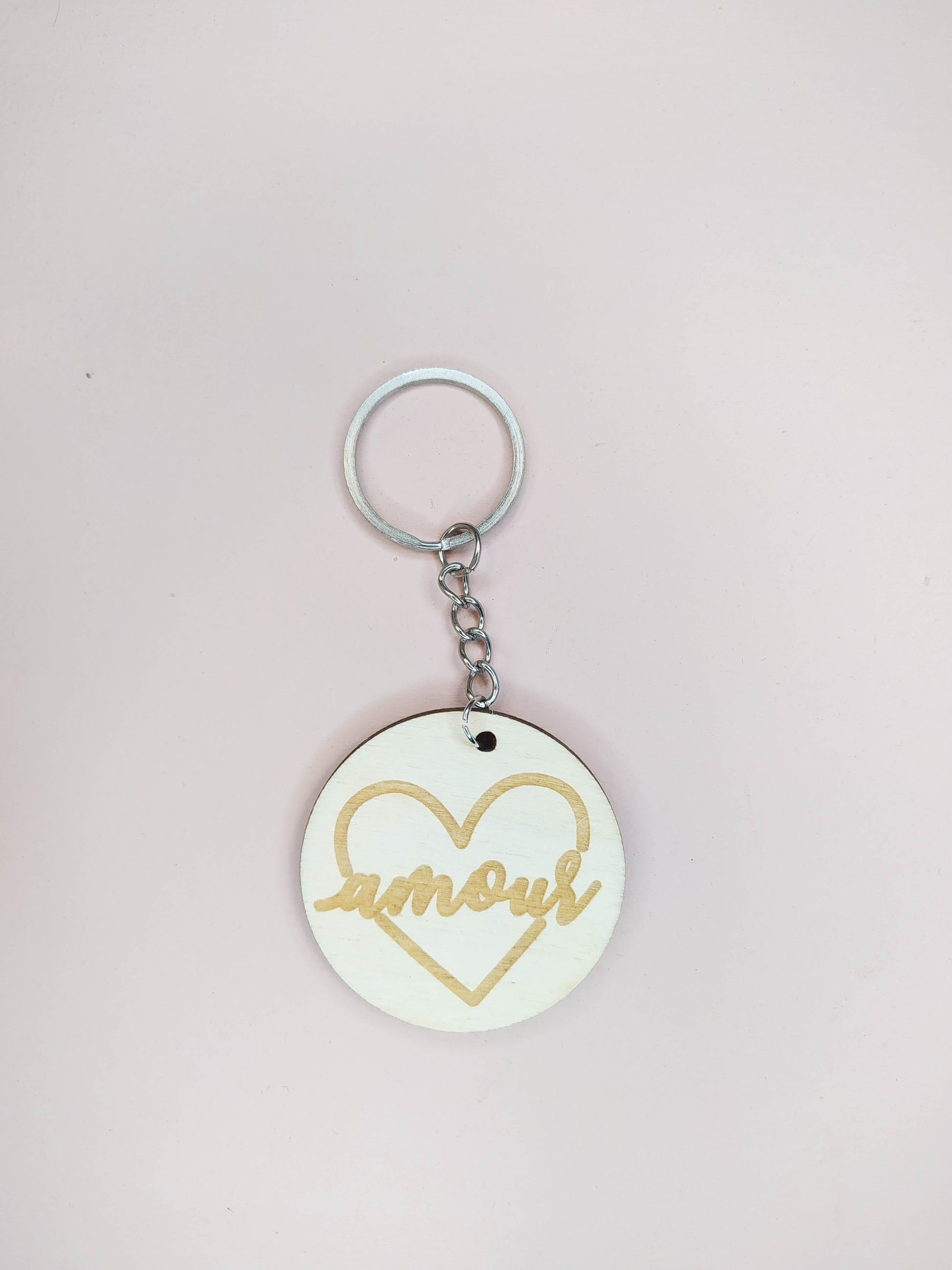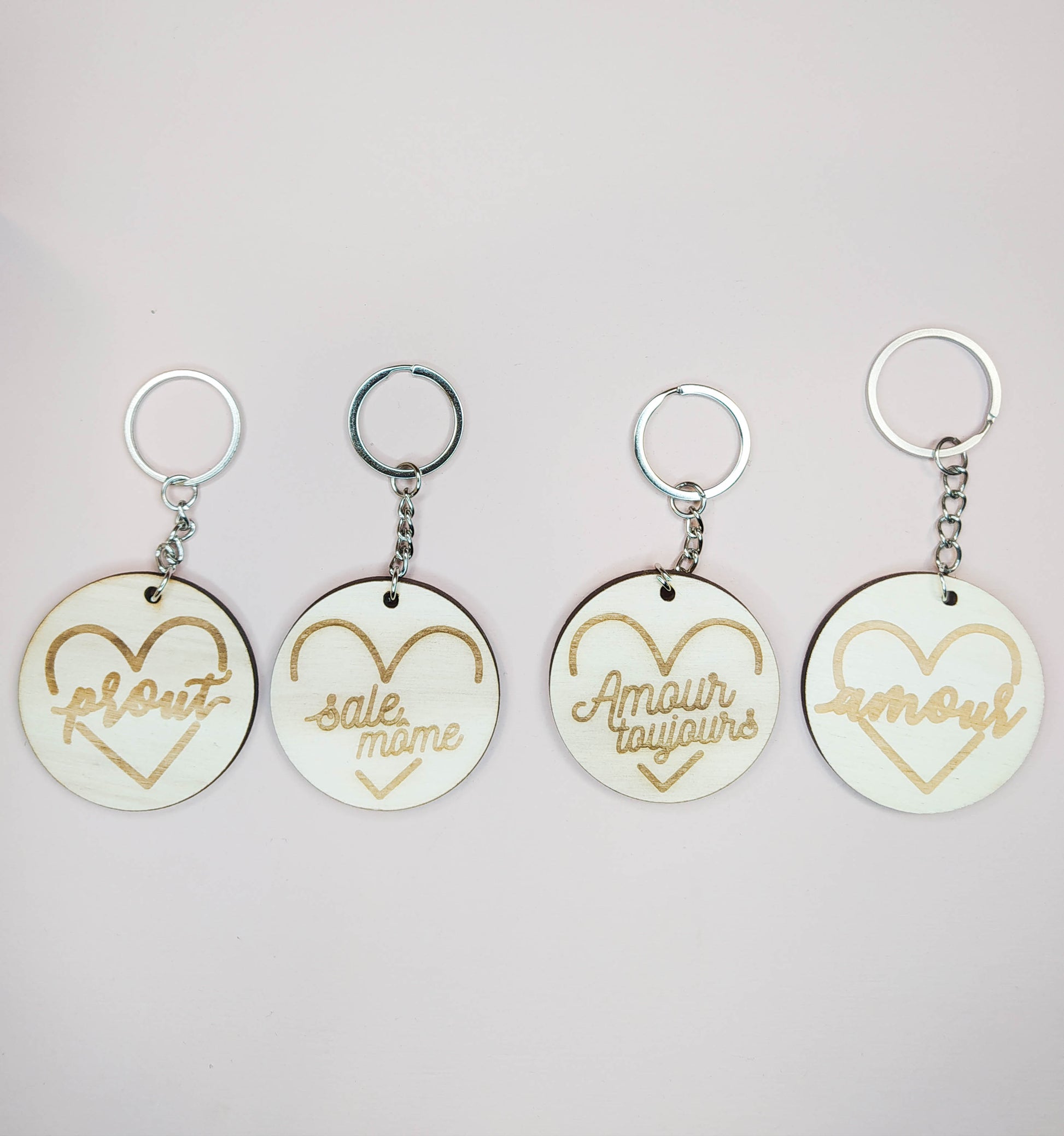 Ce joli porte-clés en bois personnalisé pourra faire passer vos messages en douceur avec son petit cœur.