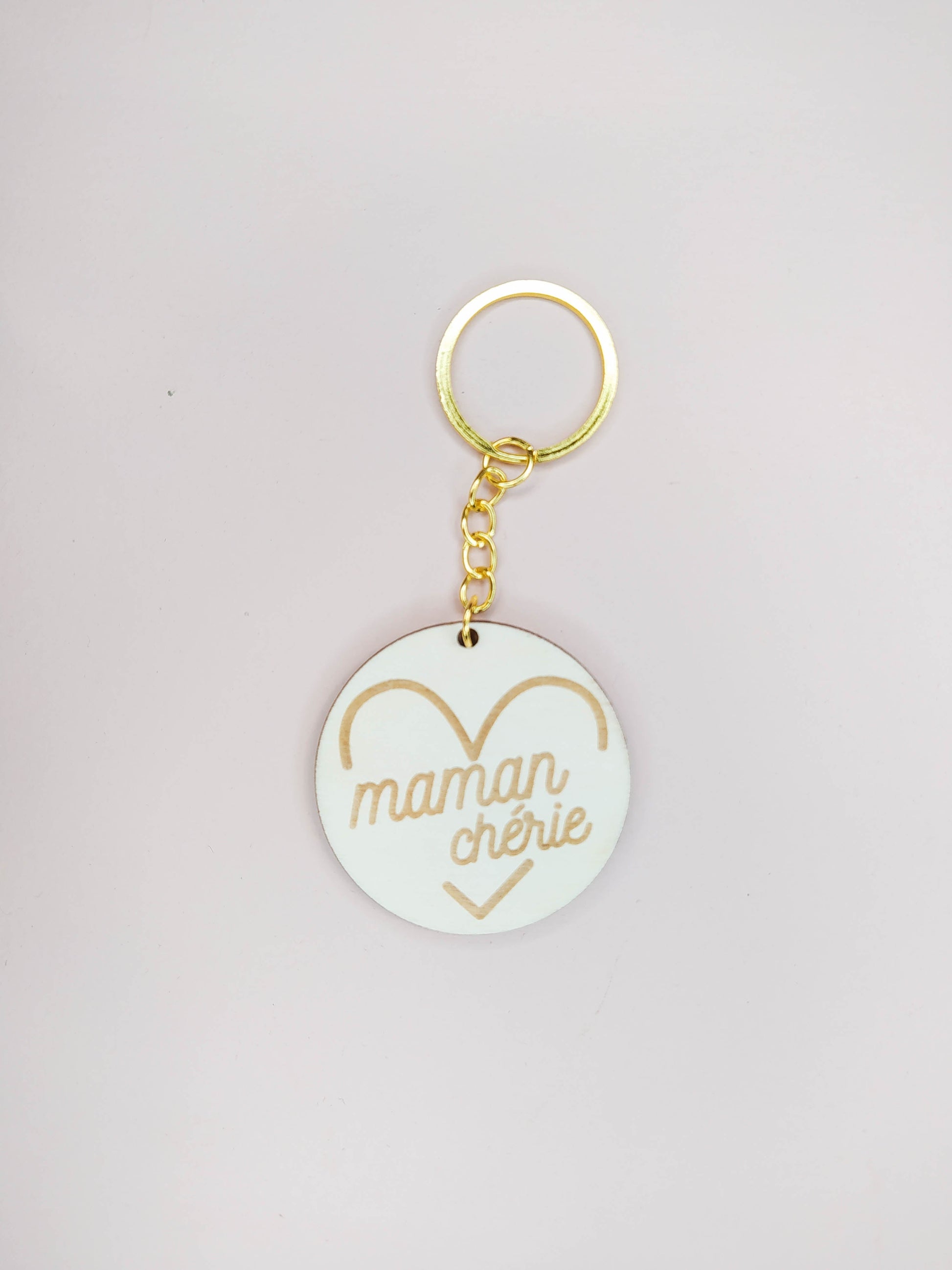 Ce joli porte-clés en bois personnalisé pourra faire passer vos messages en douceur avec son petit cœur.
