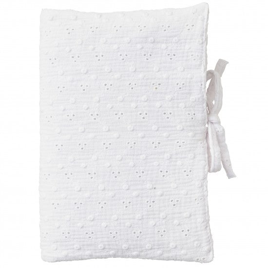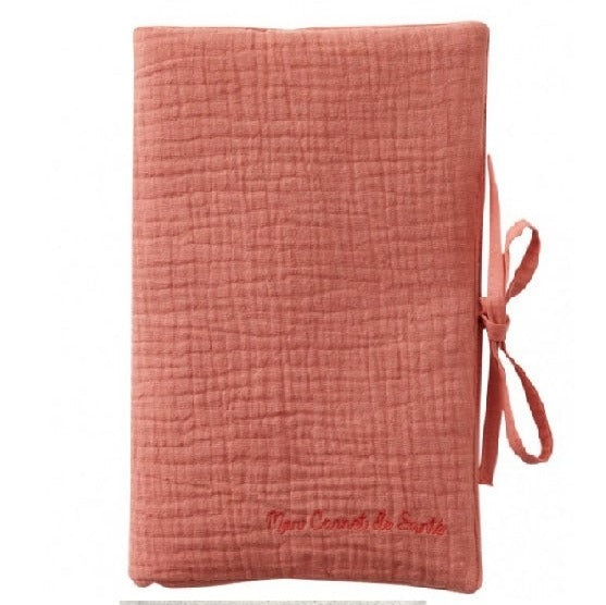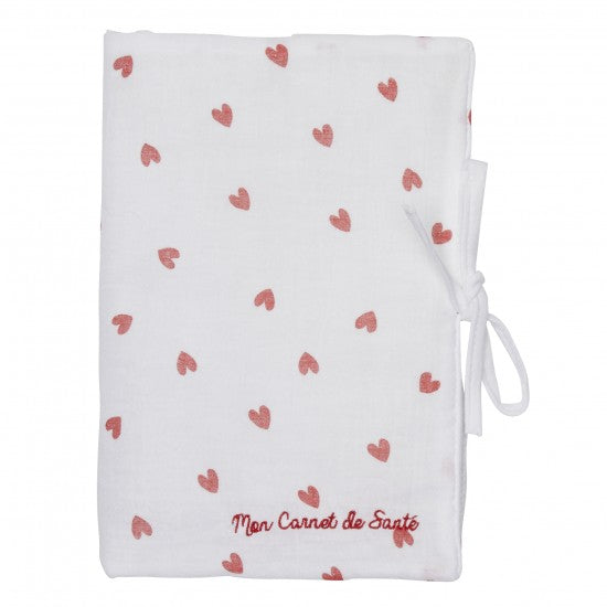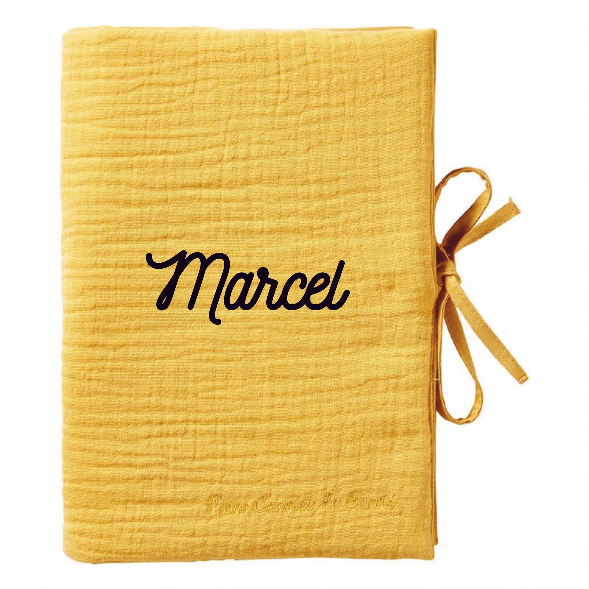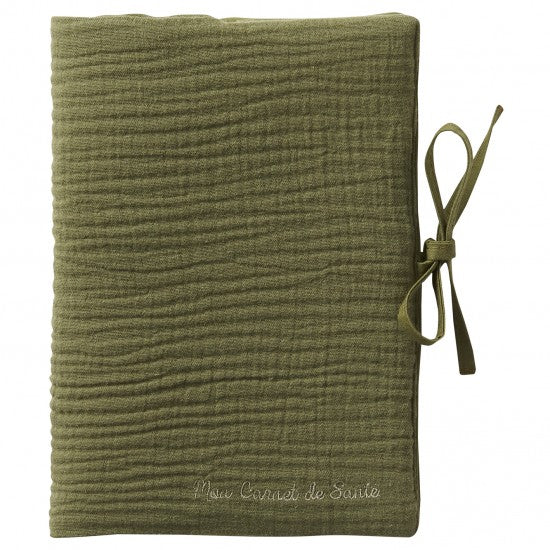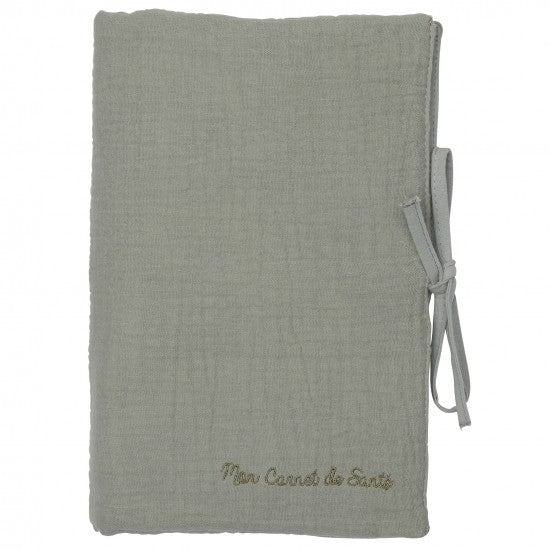 Un protège carnet de santé joli et pratique en double gaze pur coton, légèrement rembourré et personnalisé au prénom l'enfant.
