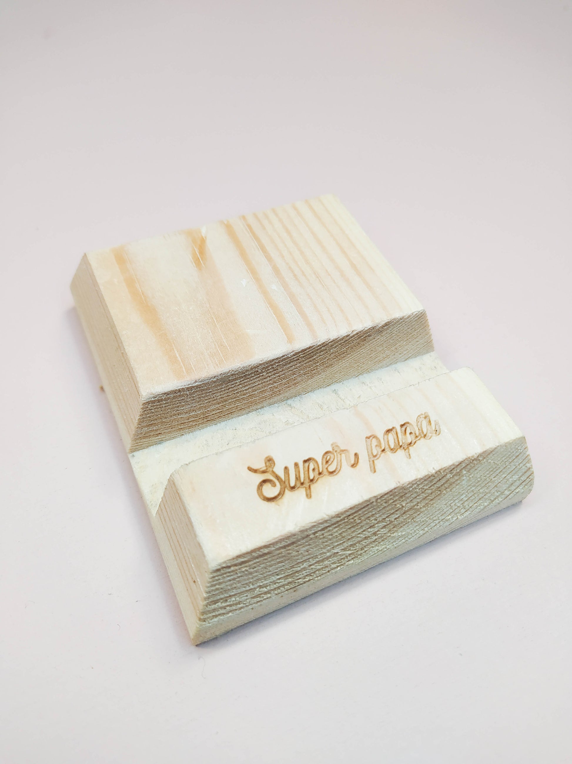 Pour un cadeau originale opter pour le support de portable en bois à personnaliser, un cadeau unique et utile.