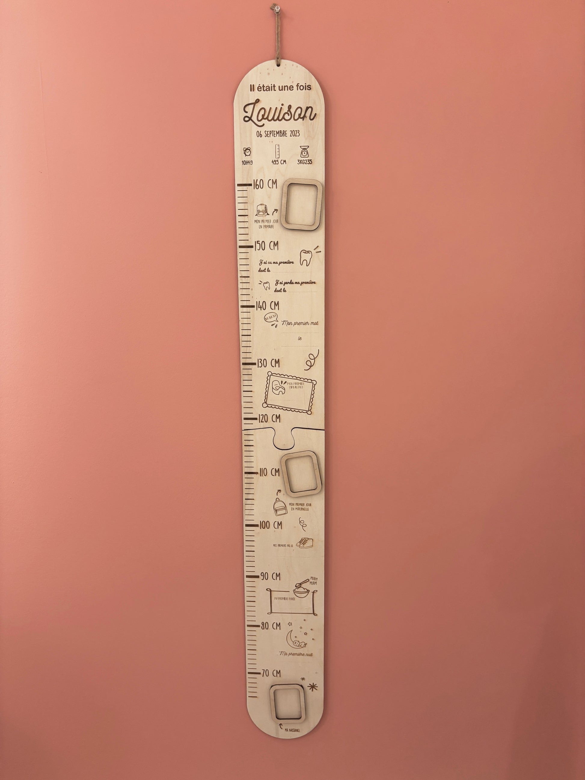 Une jolie toise en bois gravé pour mesurer vos enfants et mesurer leur évolution année après année !