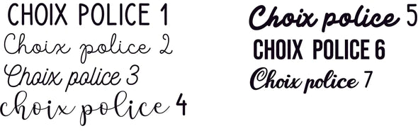 - Choisissez aussi la police que vous souhaitez, si celle-ci n'est pas précisée lors de la commande celle du modèle sera ajouté.